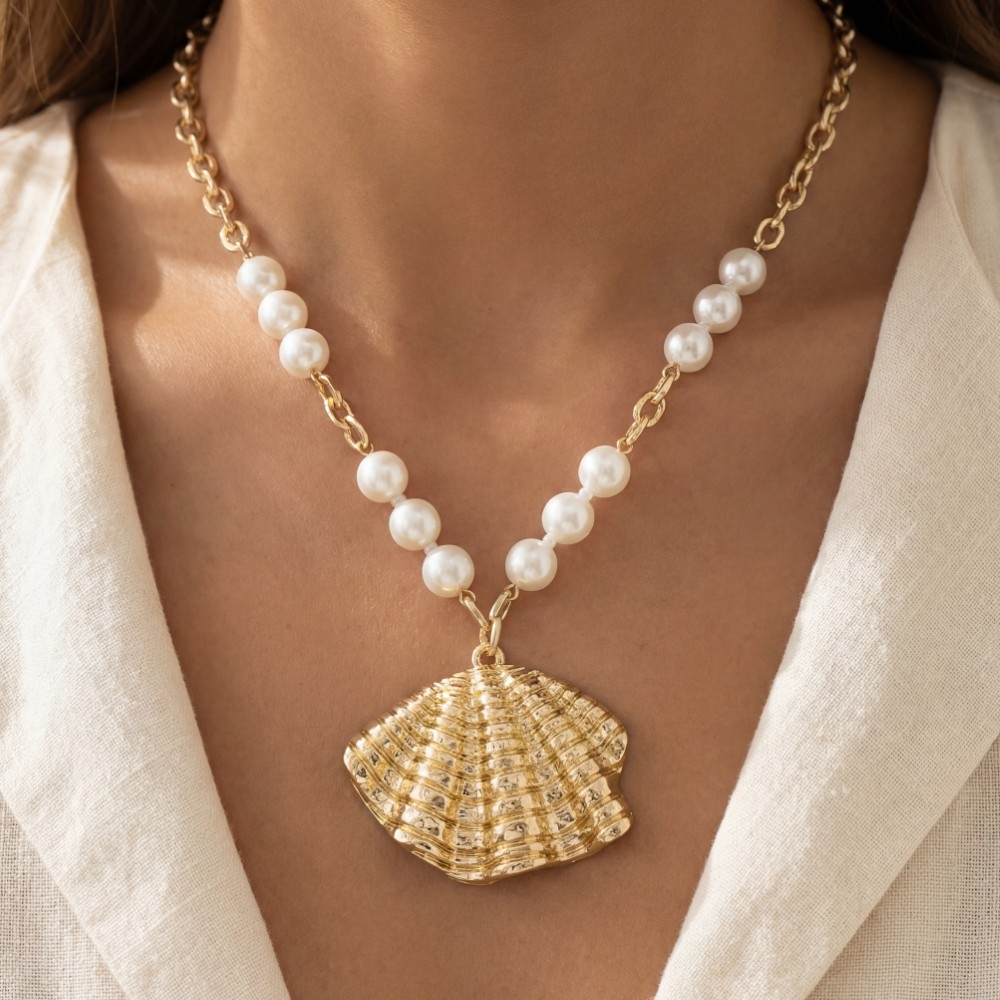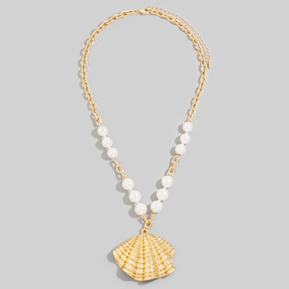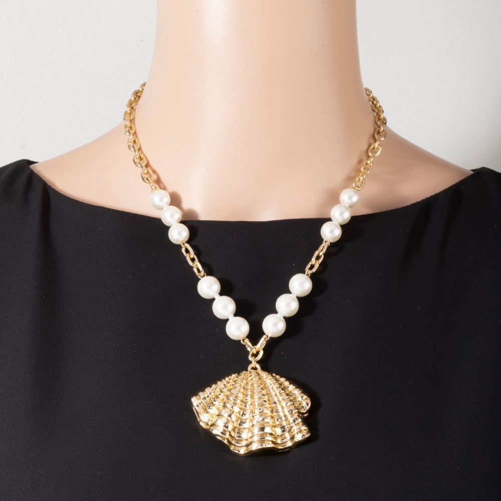 • Add a touch of luxury to any outfit, this chain necklace exudes a refined large sea shell pendant pearls and design. This item is perfect for anyone who loves to accessorize and add some personality to their outfits. Available in GDCM. This item is sold in packs of 1.