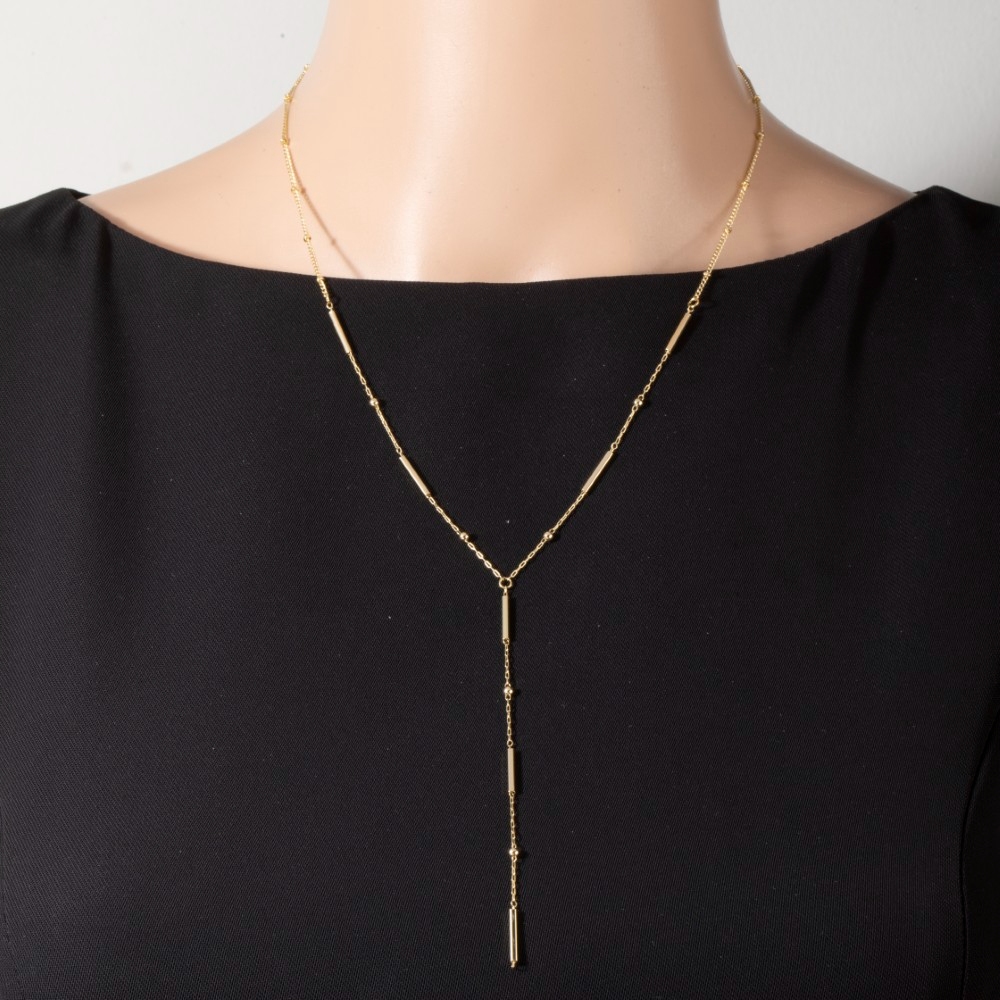 Gold Dipped Double Irregular Bar Y Chain Necklace