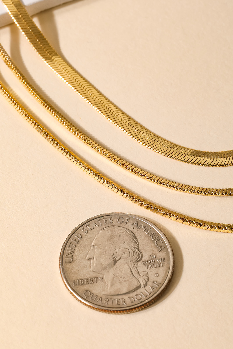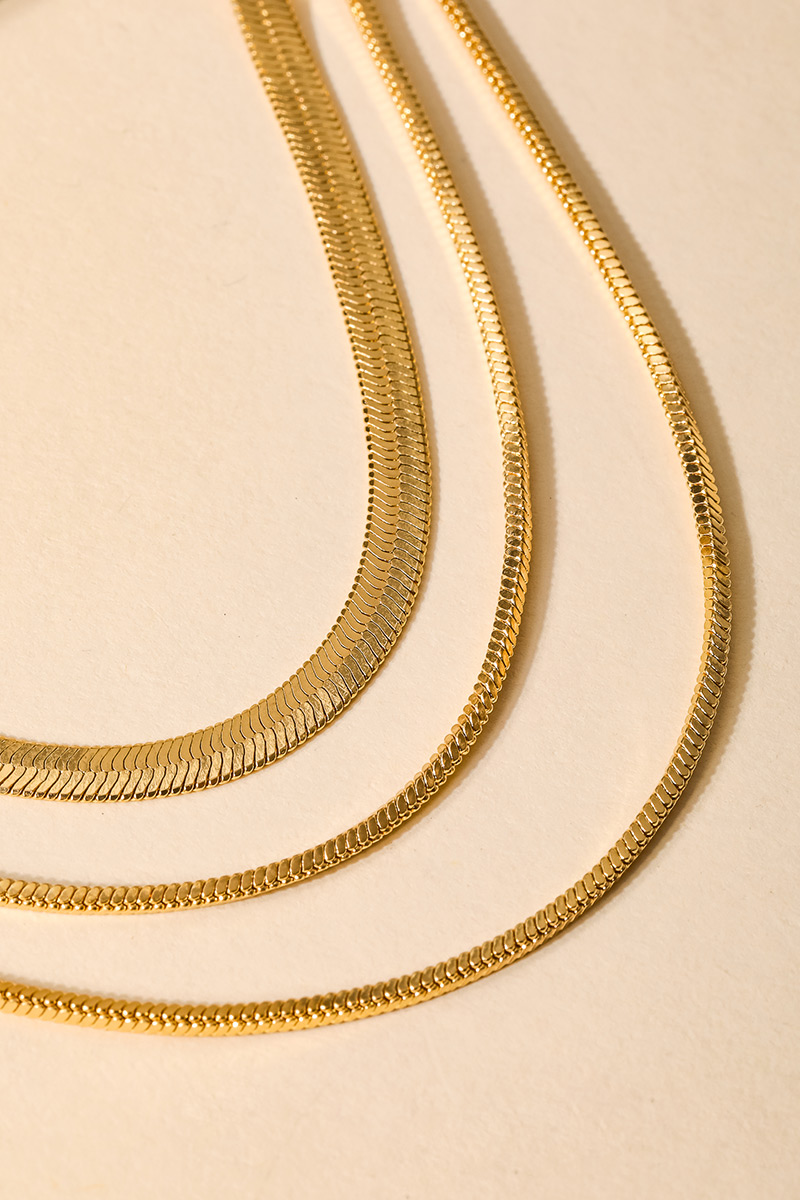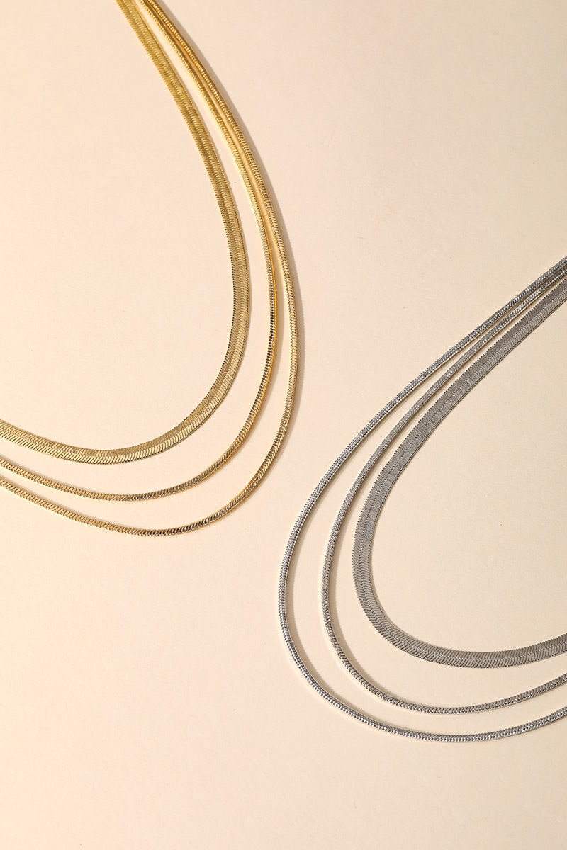 • The perfect way to elevate any outfit, this chain necklace adds a distinctive multi strand snake classic design. Unleash the power of style with this versatile chain necklace, perfect for enhancing the charm of your wardrobe. This item is sold in packs of 1.