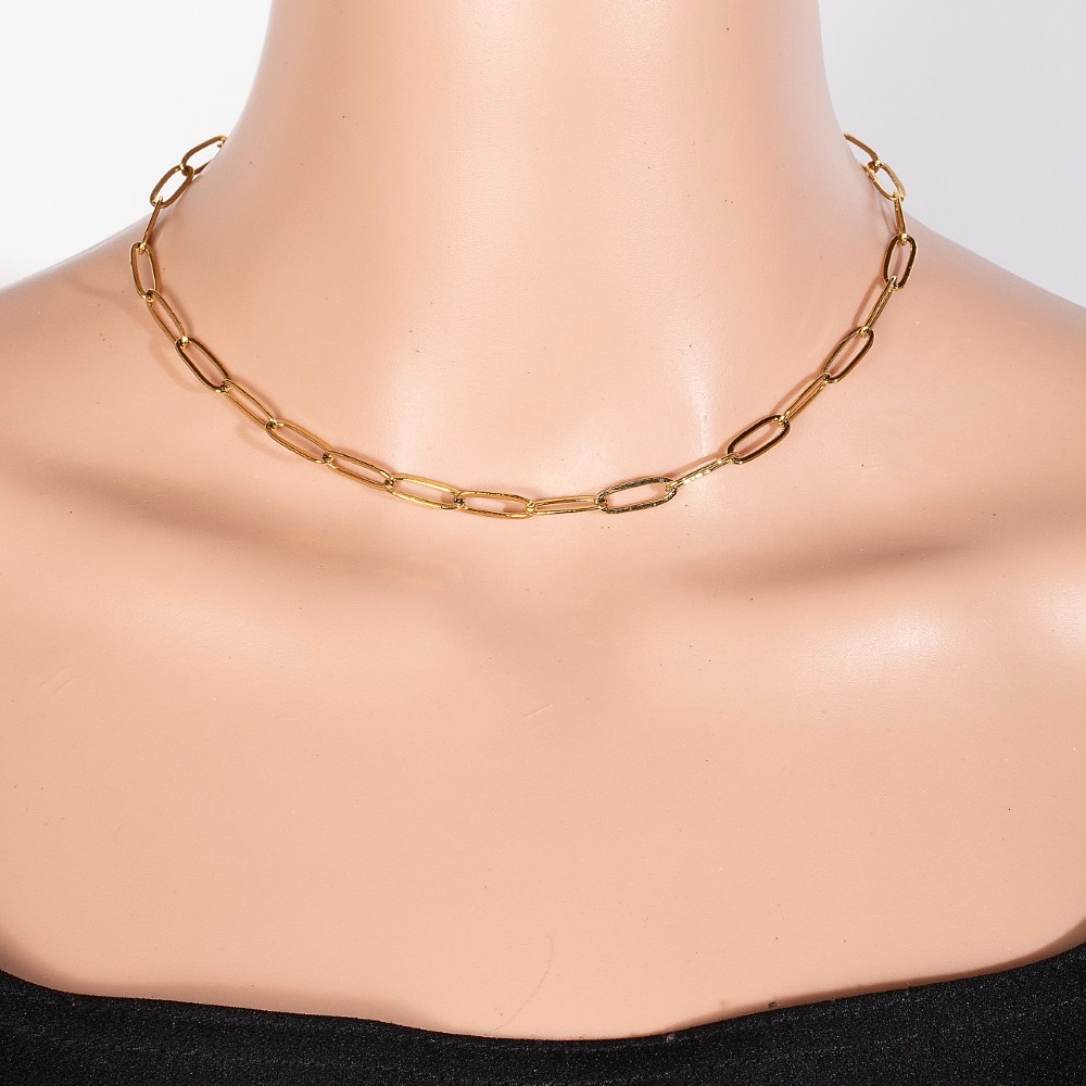 - Guaranteed to add a touch of glamour to any outfit, this chain necklace reveals an intricate pvd gold plated classic design. This item is ideal for those who want to add some personality to their outfits without being too bold. This item is sold in packs of 1.