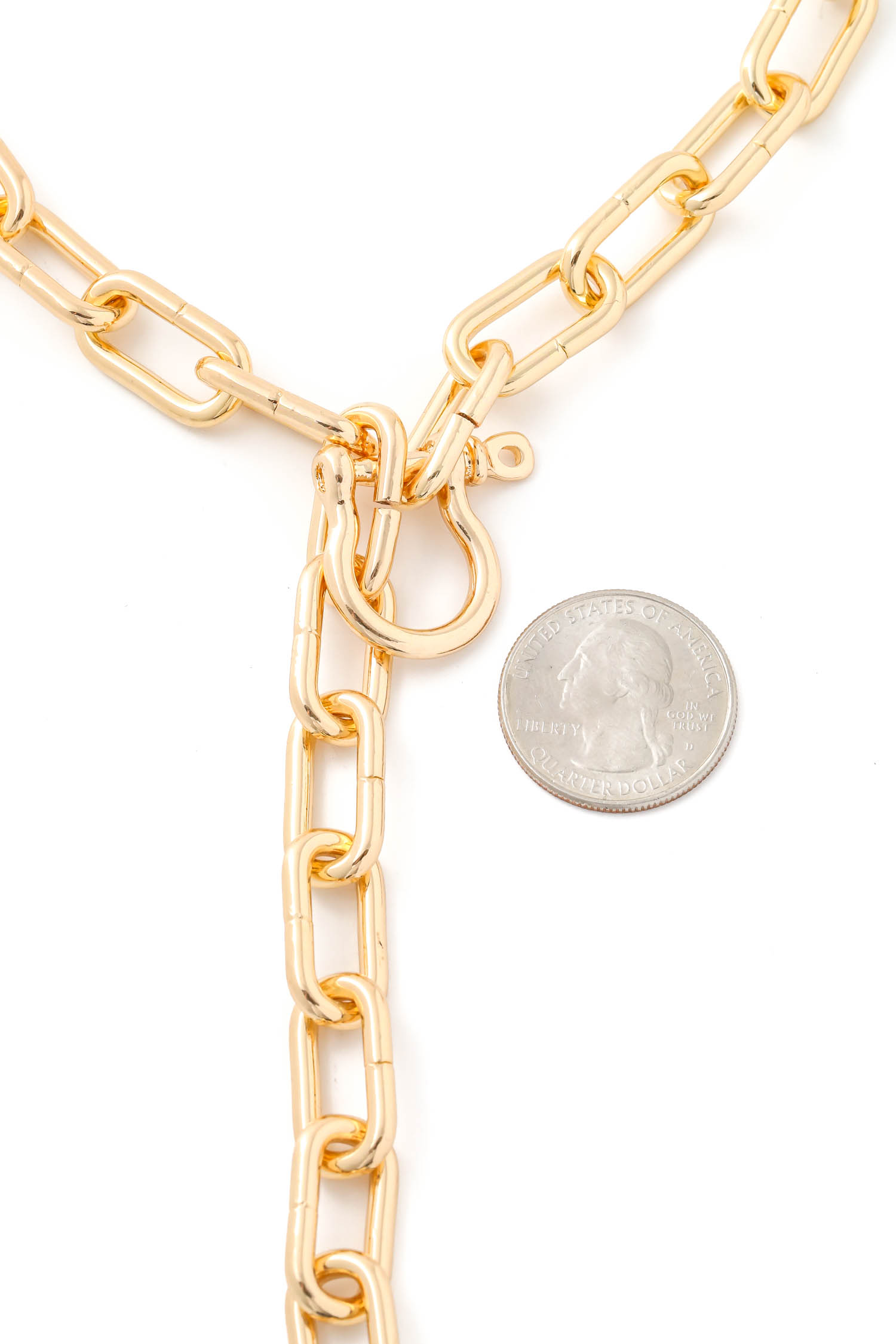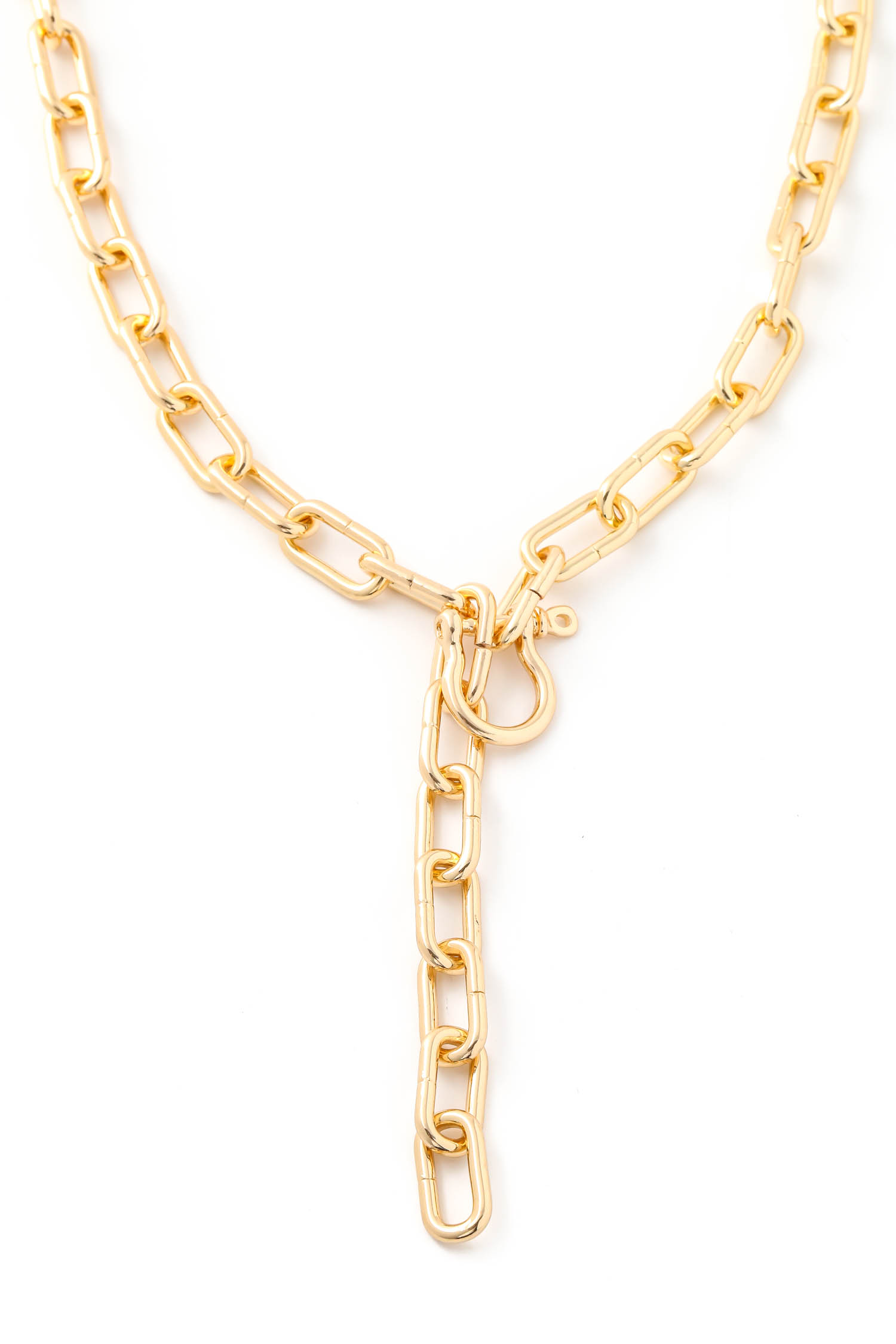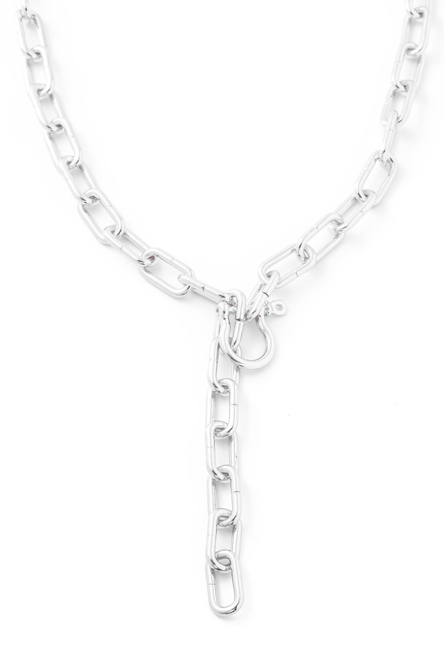 • Hot chic and trending in season must have necklace is made with a simple oval chain lariat necklace design. This is an absolute must have for any wardrobe. Available in G and S.