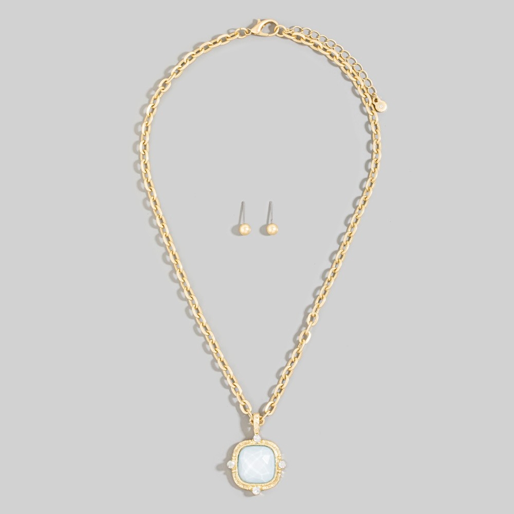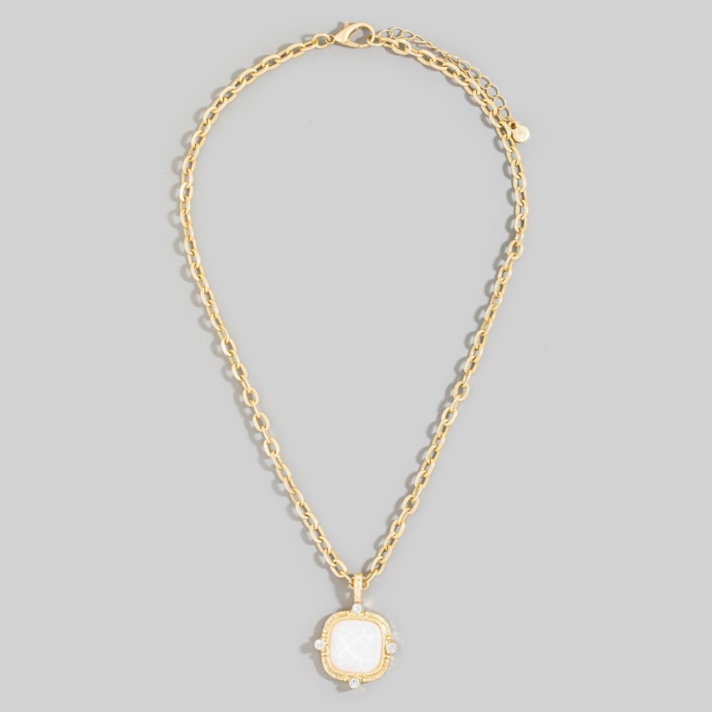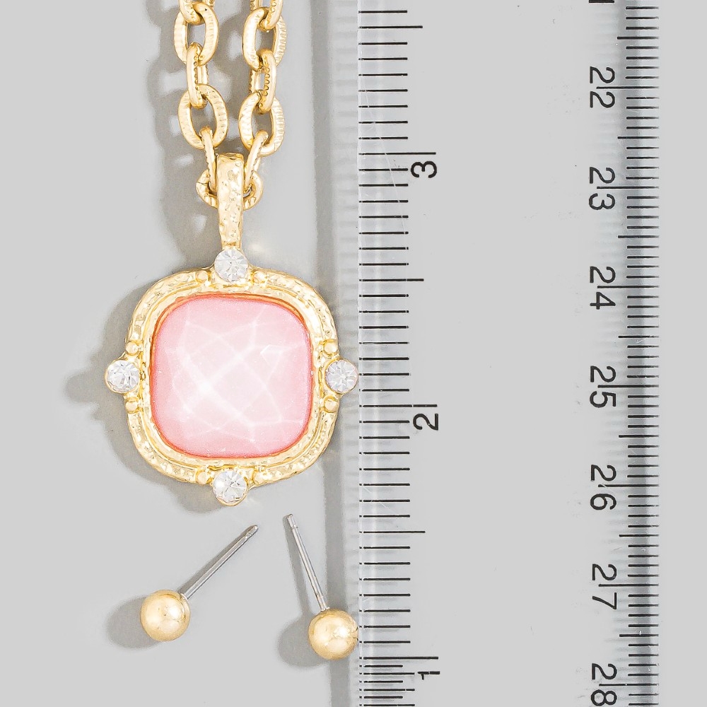 A stunning addition to any jewelry collection, this chain necklace possesses a fine square faceted stone pendant set design. Perfect for any occasion, this versatile chain necklace will enhance any outfit you wear. Available in FCH, ICYB, LPK, PL, SNOW. This item is sold in packs of 1.