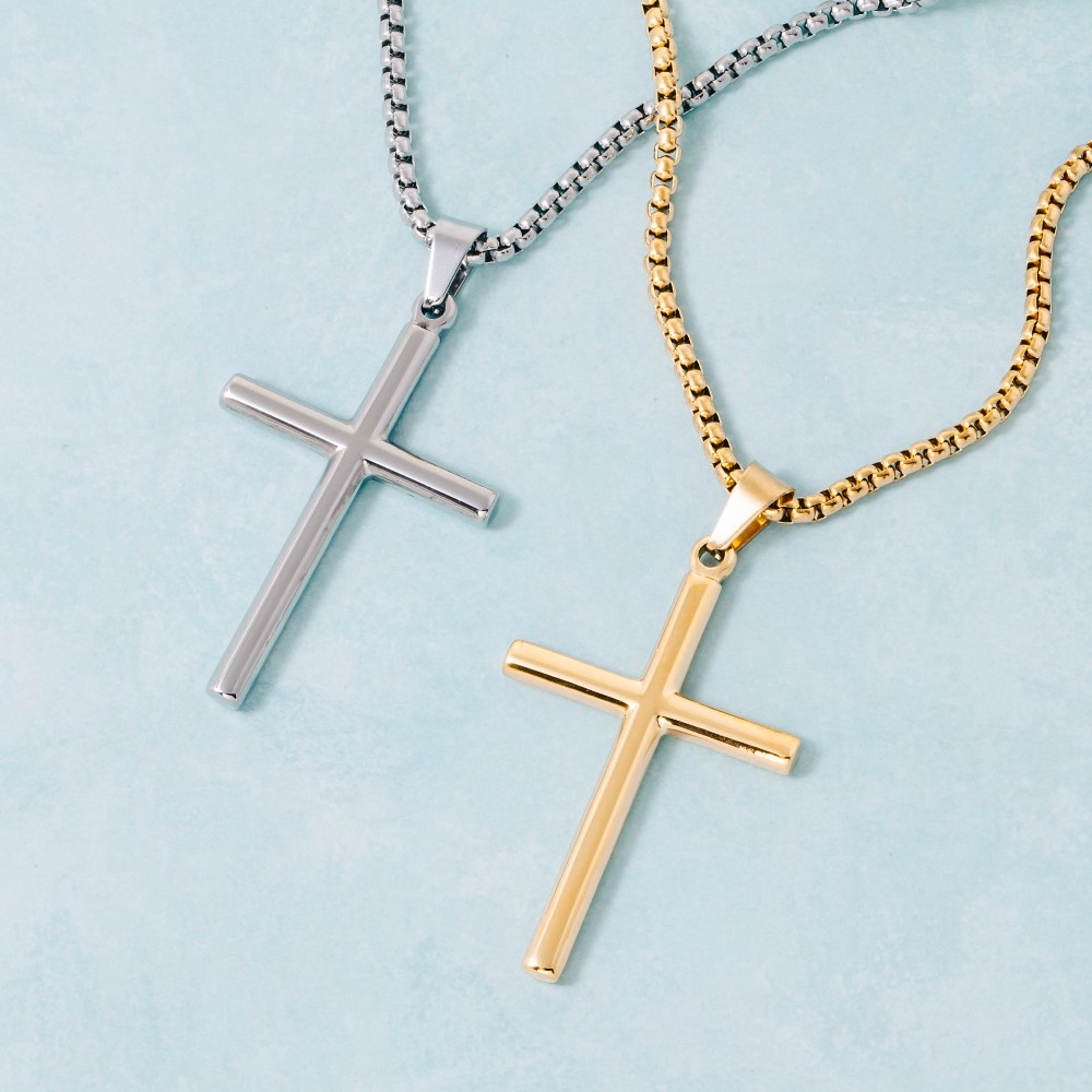 • Effortlessly chic and sophisticated, this chain necklace shows off a distinctive stainless steel cross pendant box design. Redefine your wardrobe with this versatile chain necklace, a timeless addition that brings an air of sophistication to any look. Available in NG, NX. This item is sold in packs of 1.