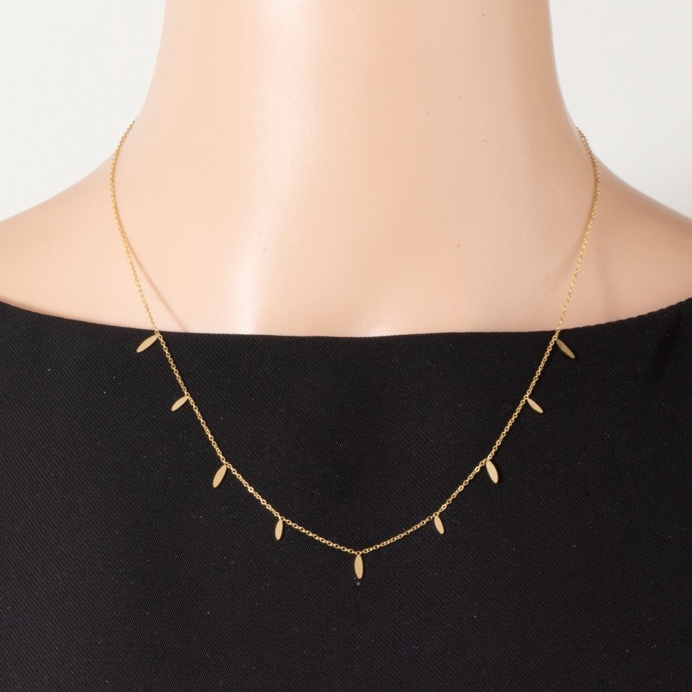 • This piece is both timeless and contemporary, this chain necklace features a distinct stainless steel leaf charms station necklace design. This item is the perfect finishing touch to any outfit, adding a touch of glamour and sophistication. Available in G. This item is sold in packs of 12.