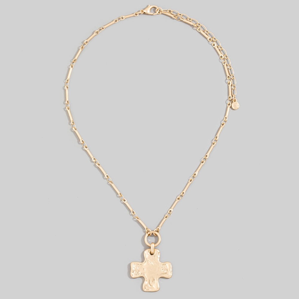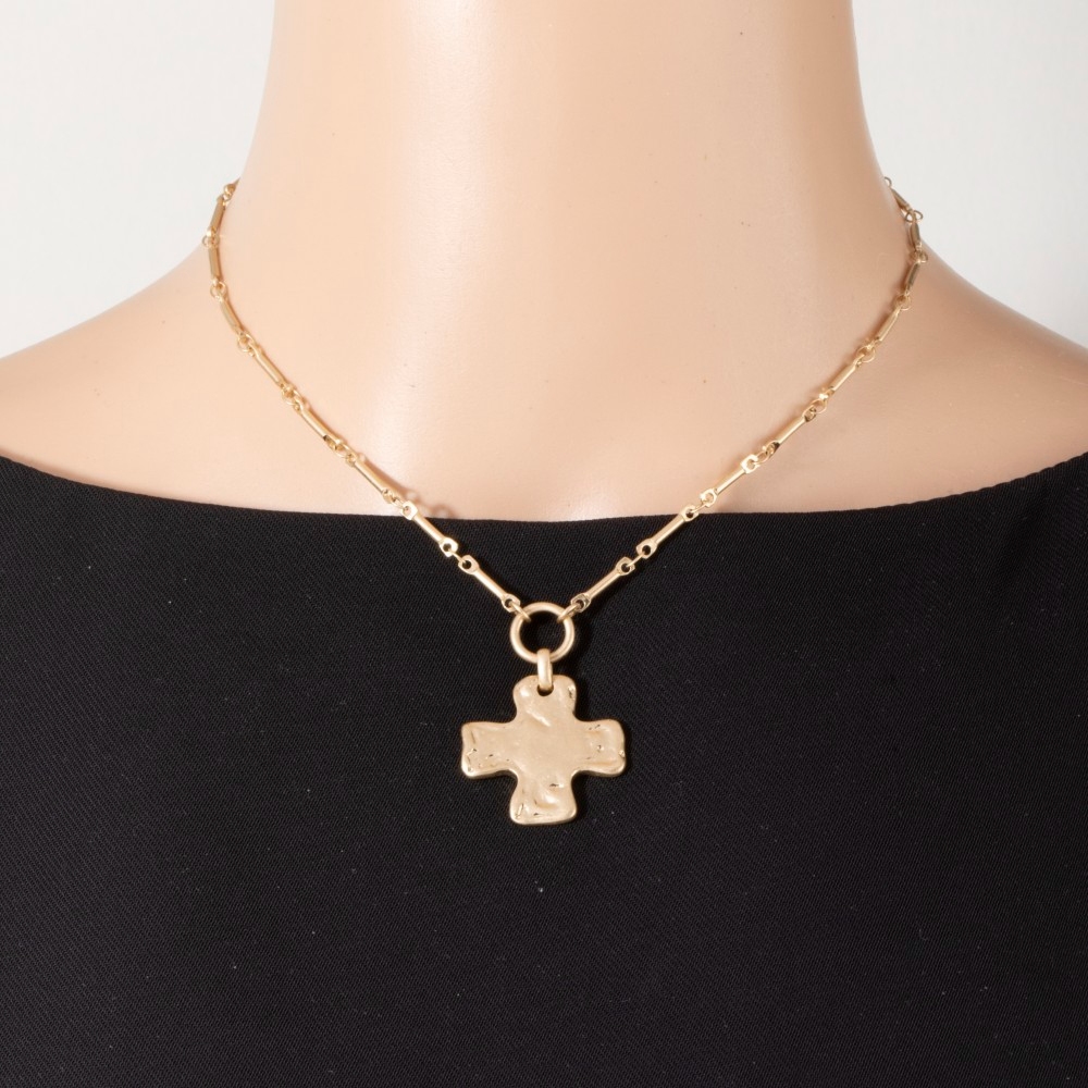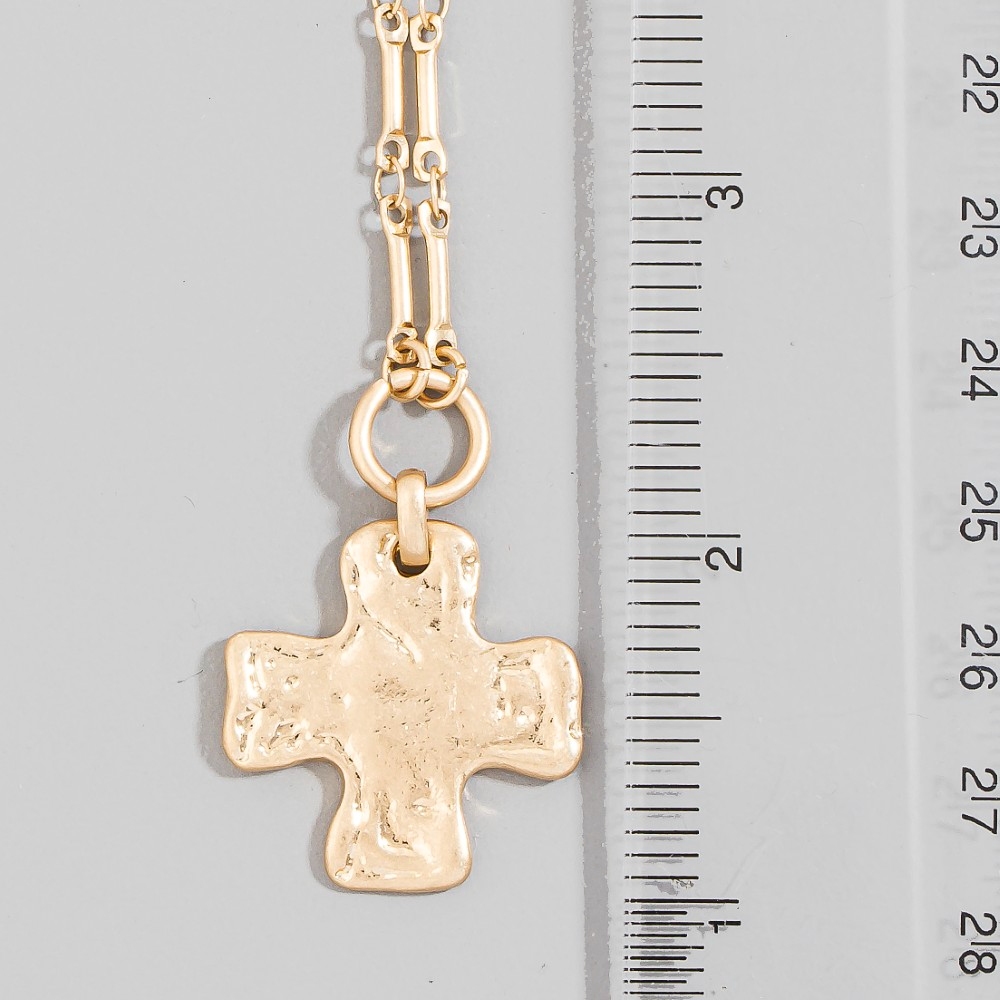 - Bold and daring, this chain necklace features a distinct warped cross pendant design. Add a dash of sophistication to your look with this versatile chain necklace, a must-have for fashion enthusiasts. Available in WG. This item is sold in packs of 1.