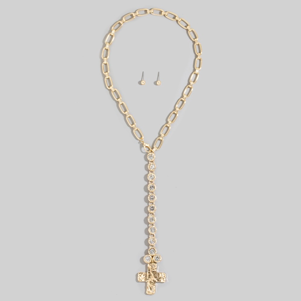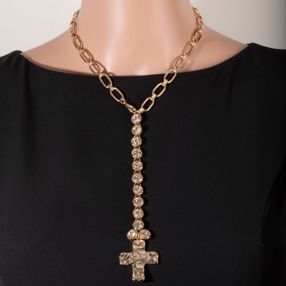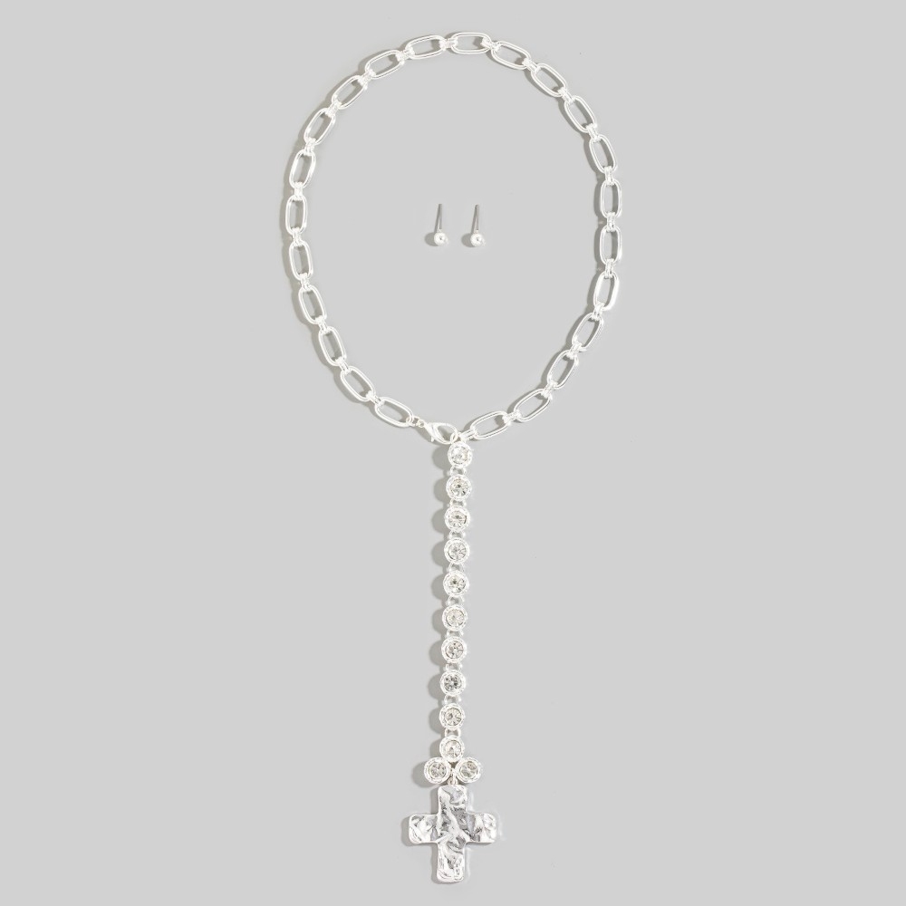 • A bold and daring choice, perfect for those who want to stand out from the crowd, this necklace set features a distinct chain link cross pendant y design. Master the art of accessorizing with this versatile necklace set, a key element for achieving a chic and polished look. Available in GD, SV. This item is sold in packs of 1.