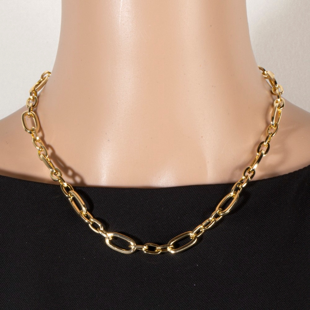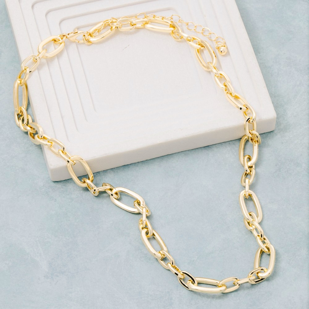 A classic design with a contemporary twist, this chain necklace displays a unique cable chain link necklace design. Add some personality to your outfit with this stylish chain necklace. Available in G. This item is sold in packs of 1.