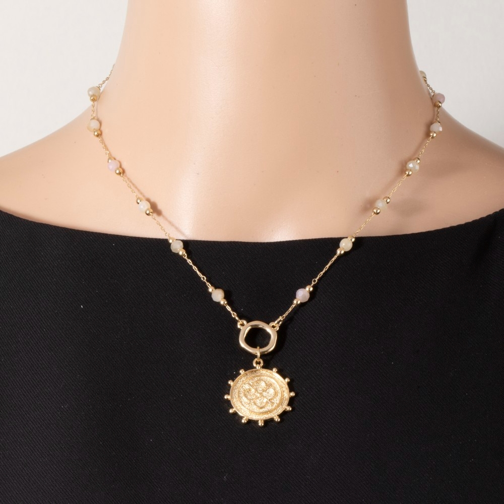 Round Stone Beaded Necklace
