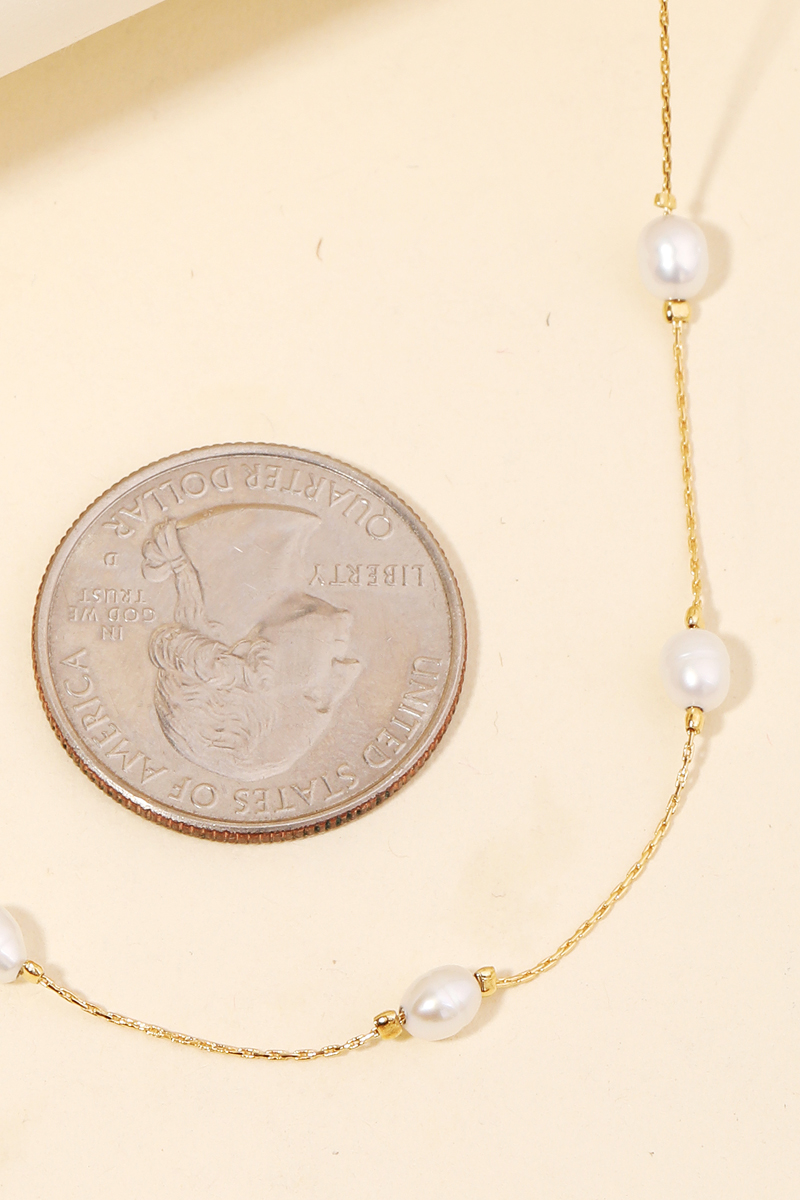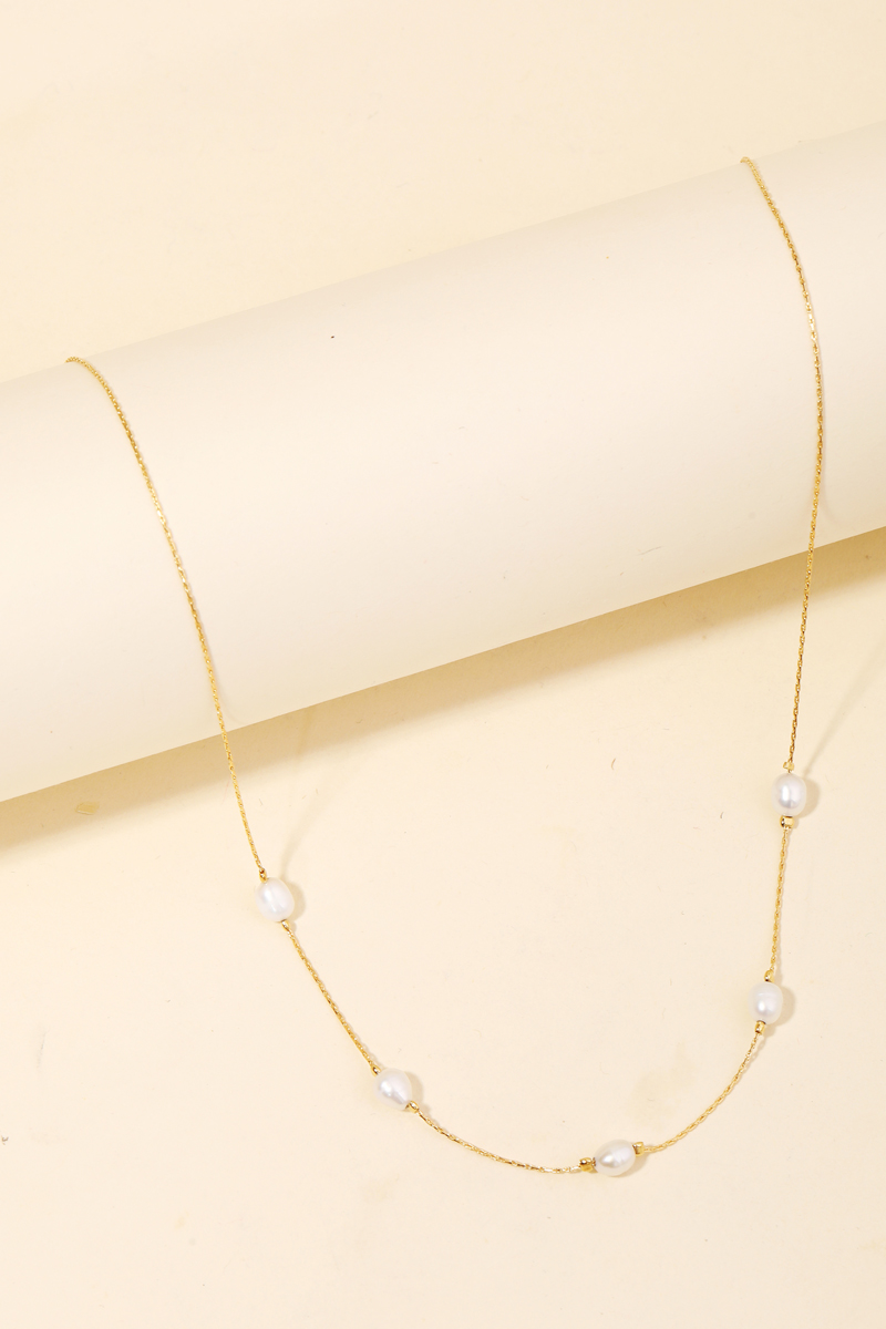 - A stunning addition to any jewelry collection, this necklace evokes a captivating dainty chain pearl station design. Perfect for dressing up or down, this versatile accessory adds a touch of sophistication to any look. Available in G and S. This item is sold in packs of 1.