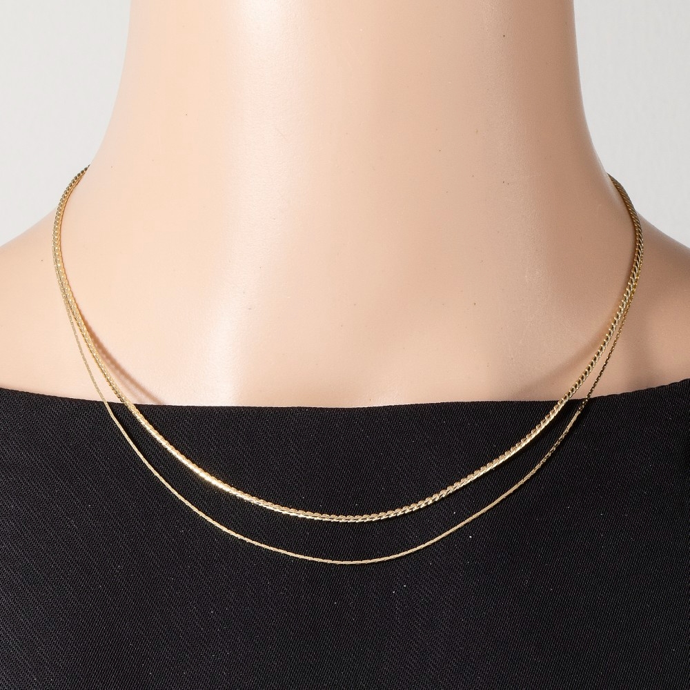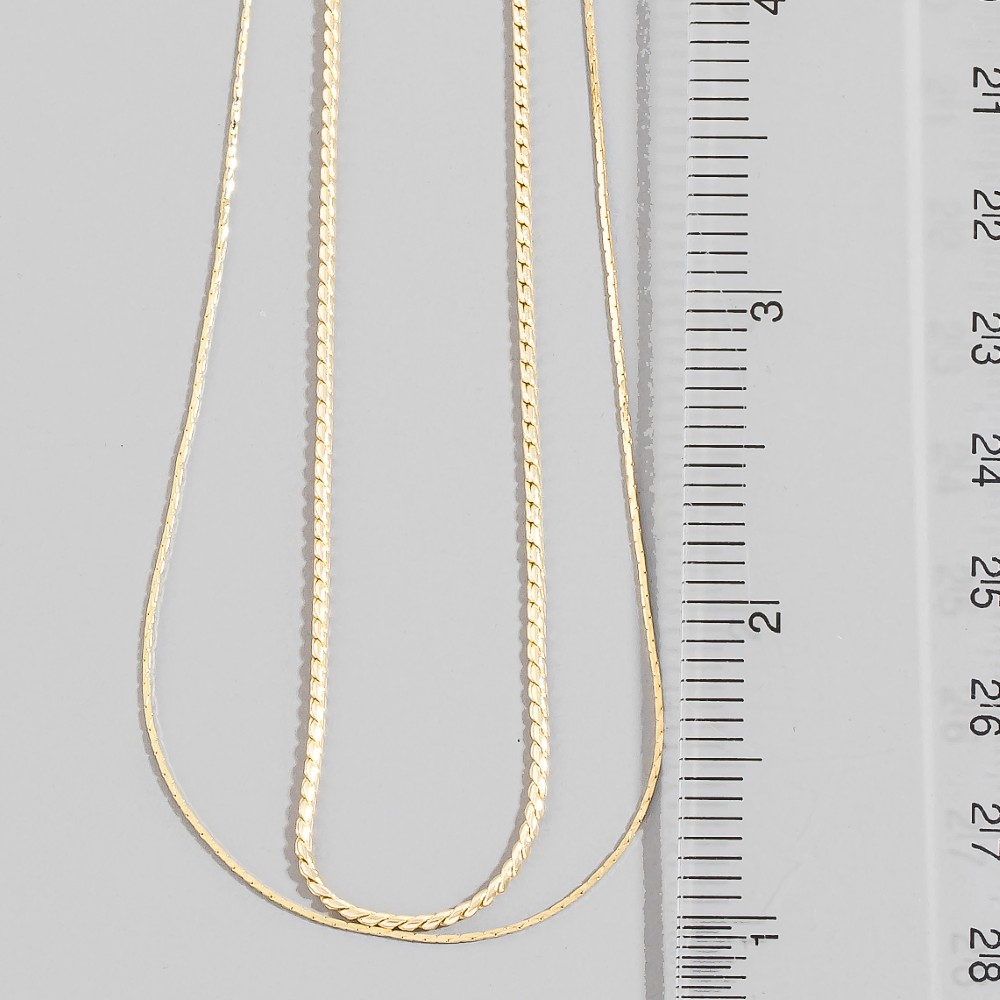 - Elevate any look, this chain necklace introduces an exceptional dainty double row design. Perfect for dressing up your favorite outfit, this chain necklace is a must-have. This item is sold in packs of 12.