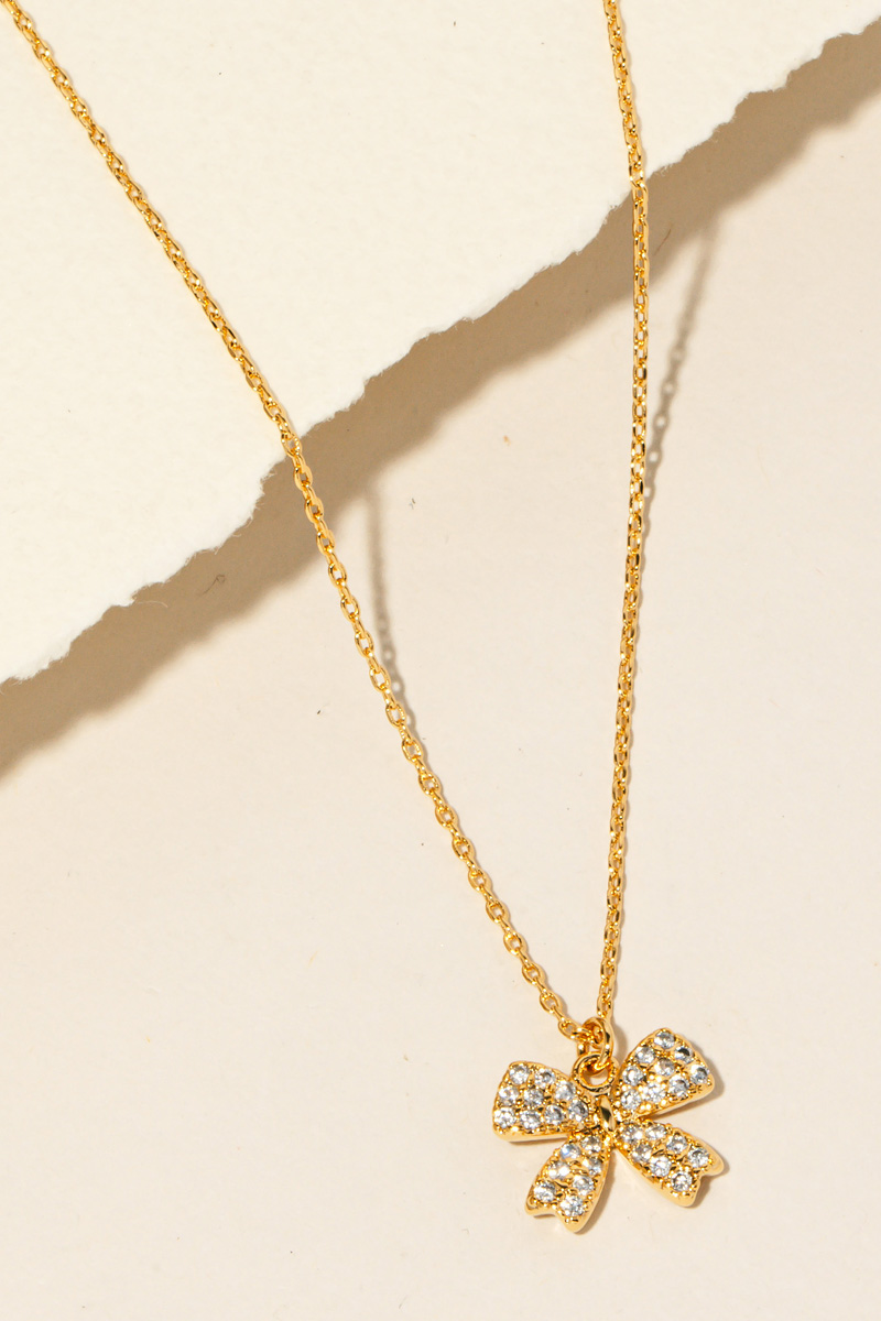A versatile and stylish addition to any wardrobe, this necklace comes with a special pave ribbon bow pendant design. Elevate your style effortlessly with this versatile accessory, enhancing the appeal of any ensemble. Available in G and S. This item is sold in packs of 1.