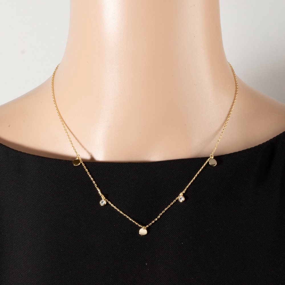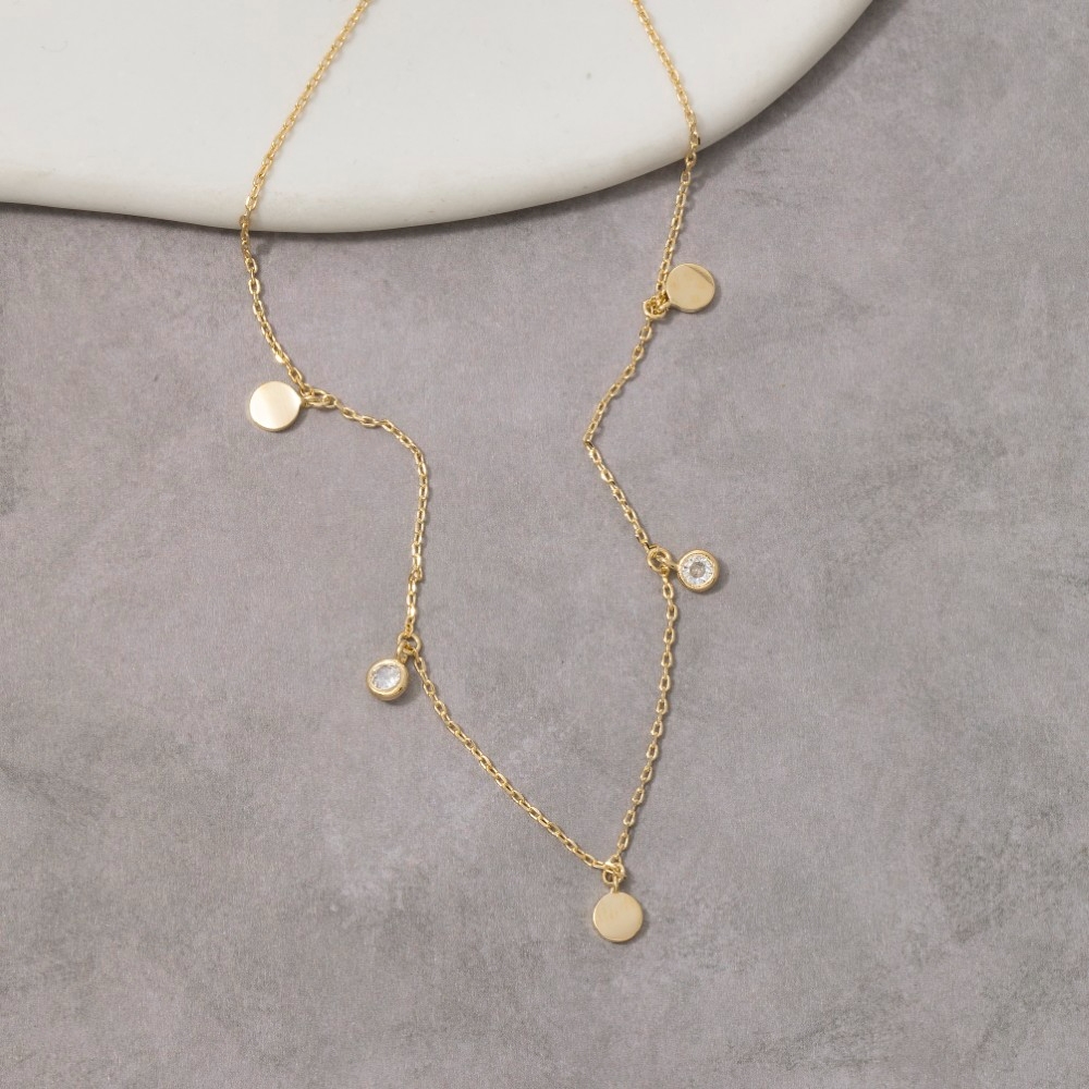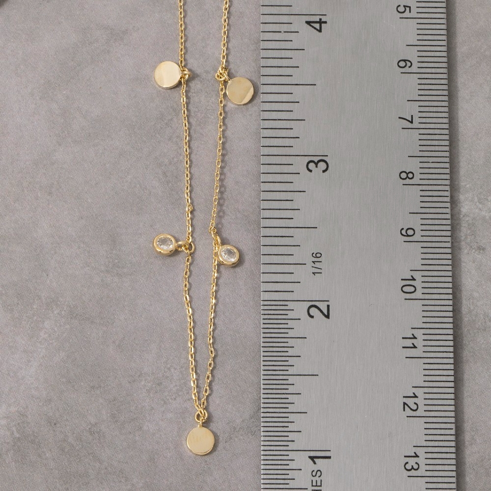 Cz Circle Disc Station Chain Necklace