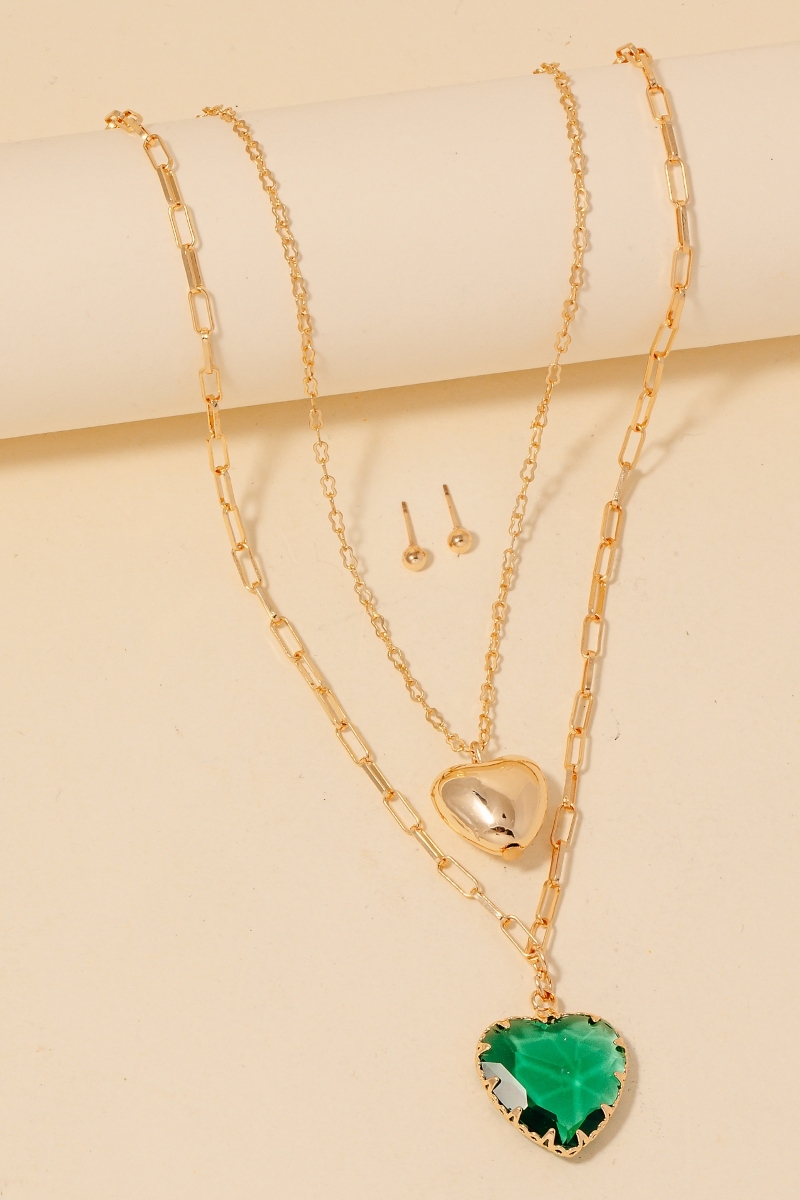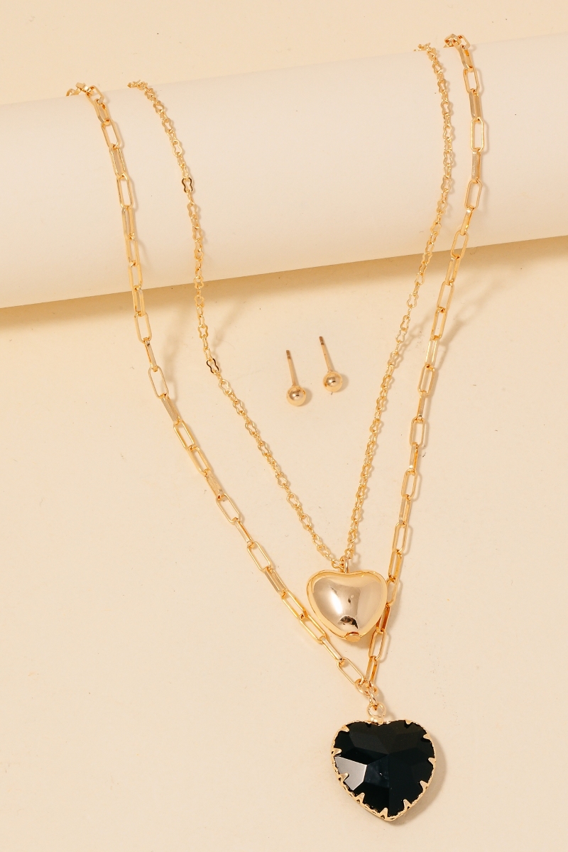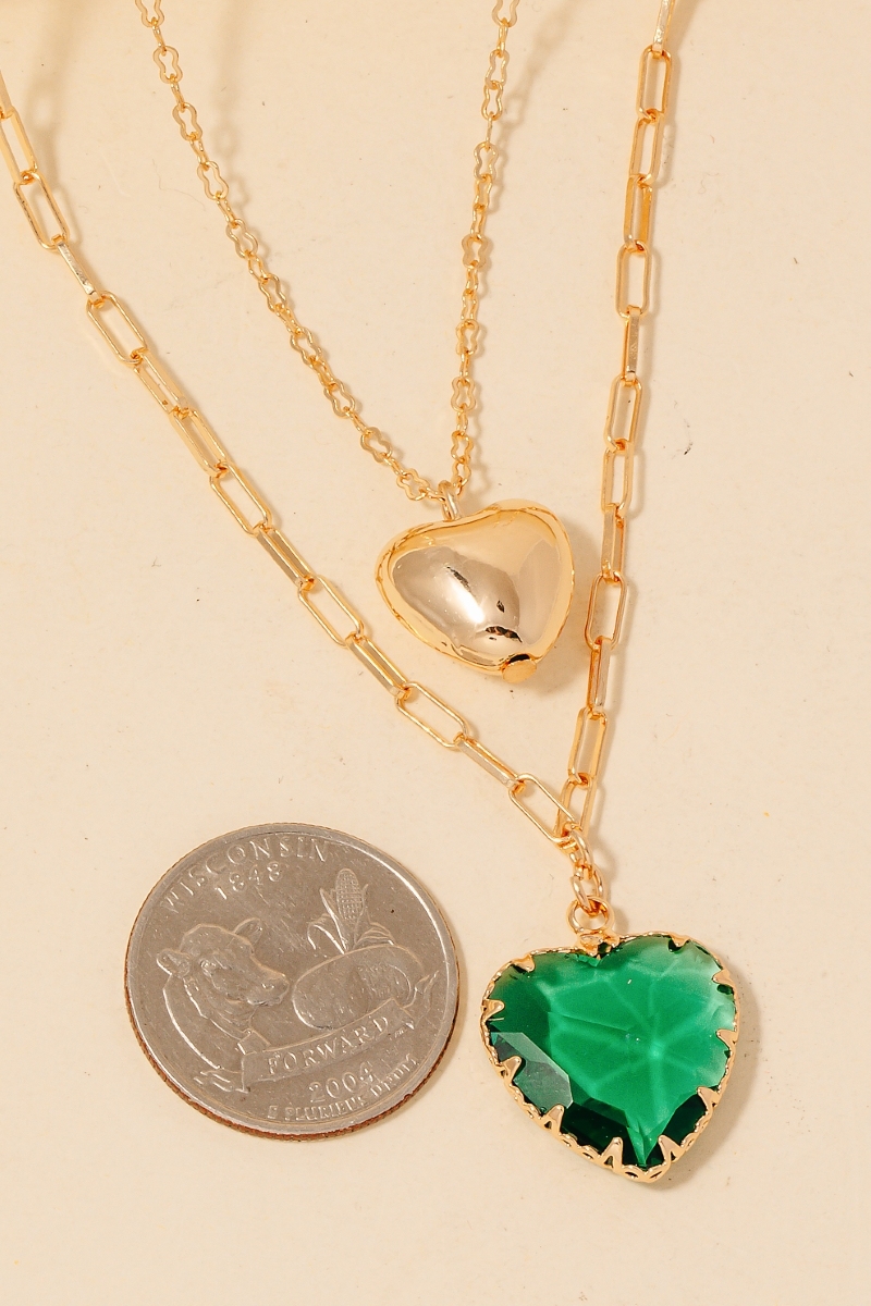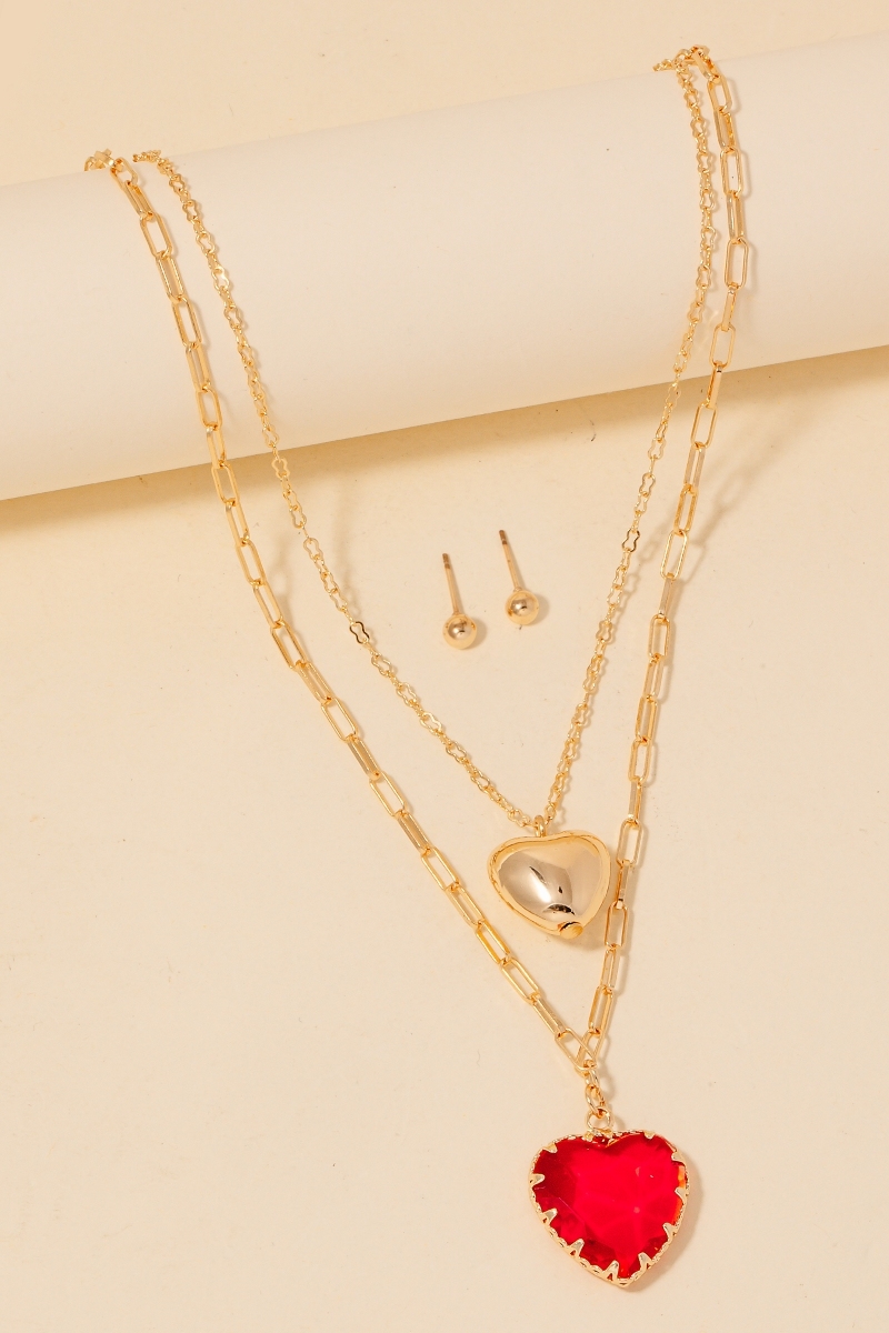 Stainless Steel Layered Heart Pendant Necklace