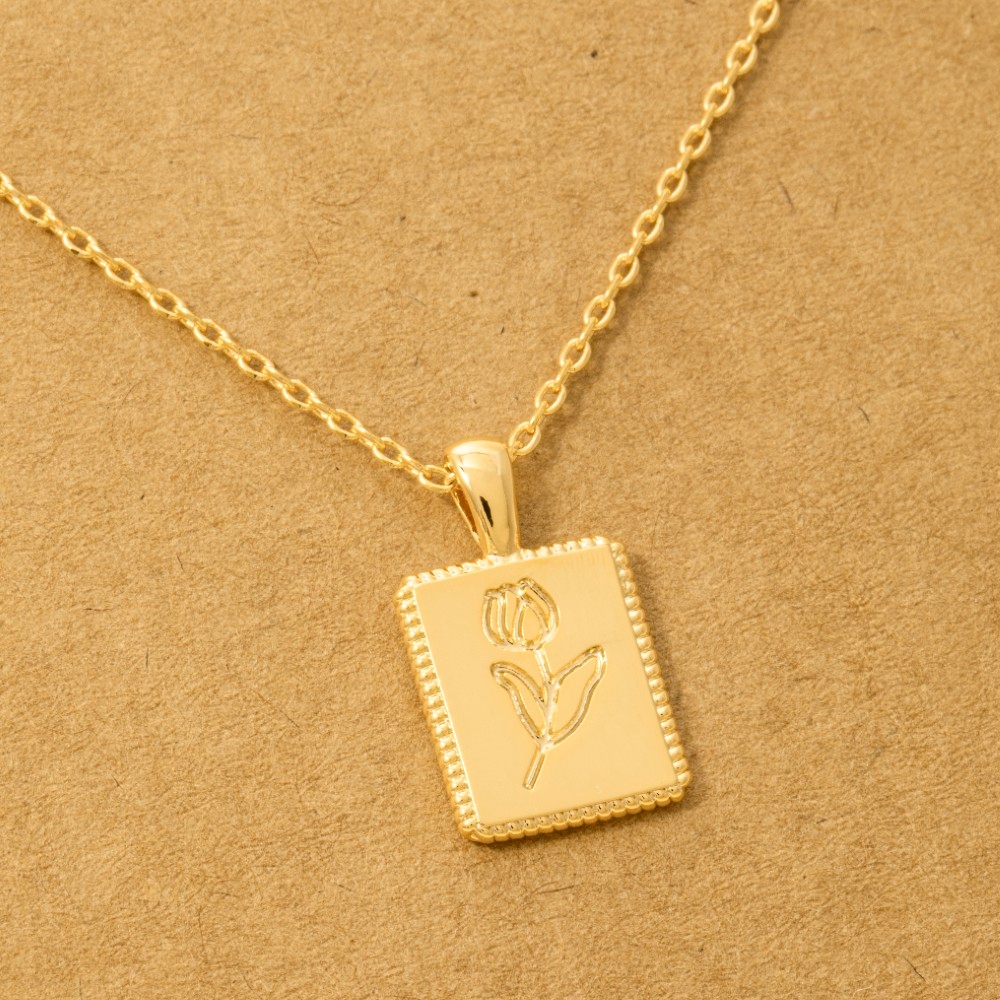 Perfect for any fashion-forward individual, this trending necklace flaunts a luxurious flower print square pendant necklace design. Take your style to the next level by incorporating this versatile trending necklace, a key element in achieving a polished look. Available in G, S and R. This item is sold in packs of 1.