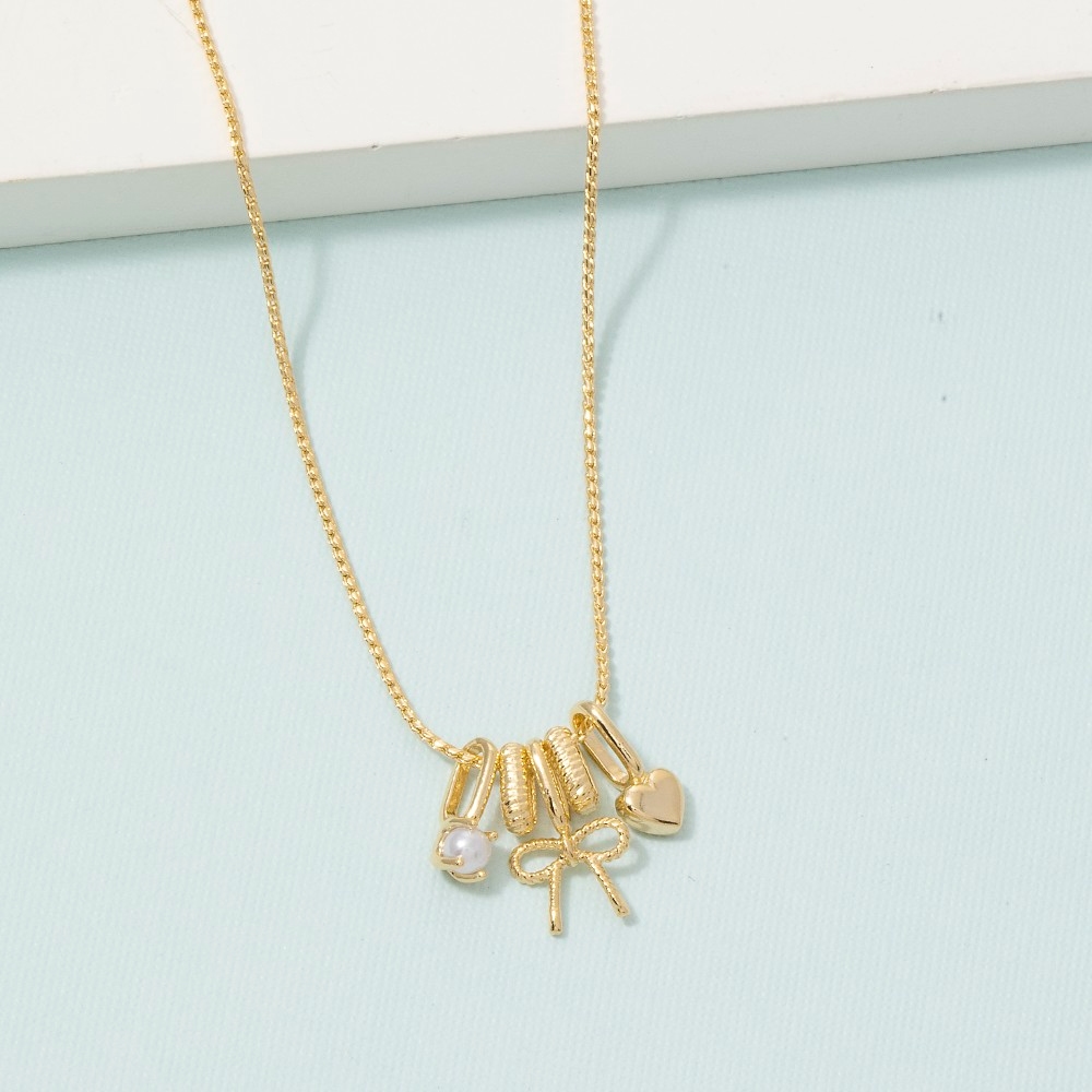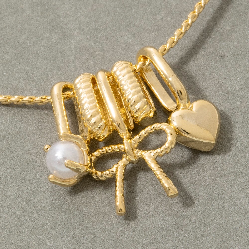 A stunning addition to any jewelry collection, this pendant necklace adds a distinctive gold bow & heart charm design. This item adds the perfect finishing touch to any outfit, making it stand out from the crowd. Available in GDCRM. This item is sold in packs of 1.