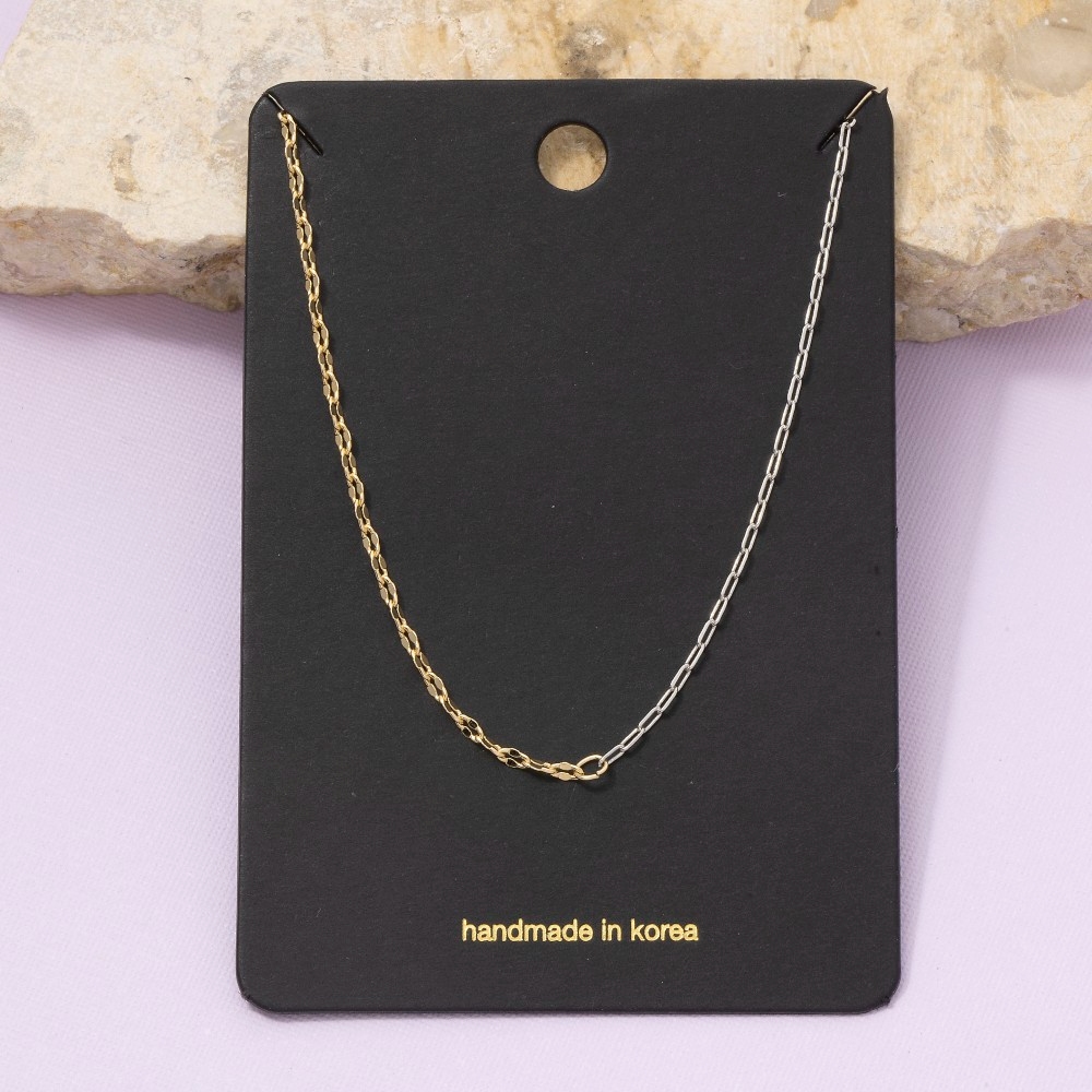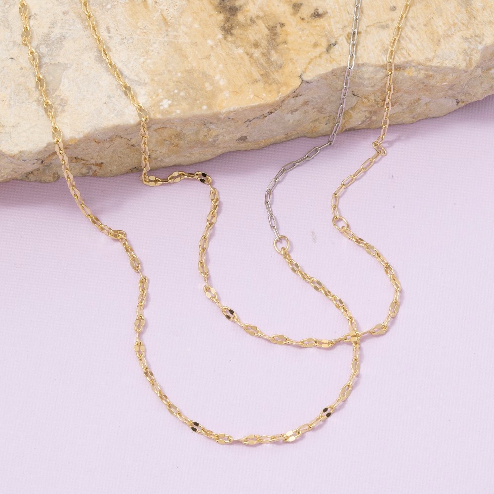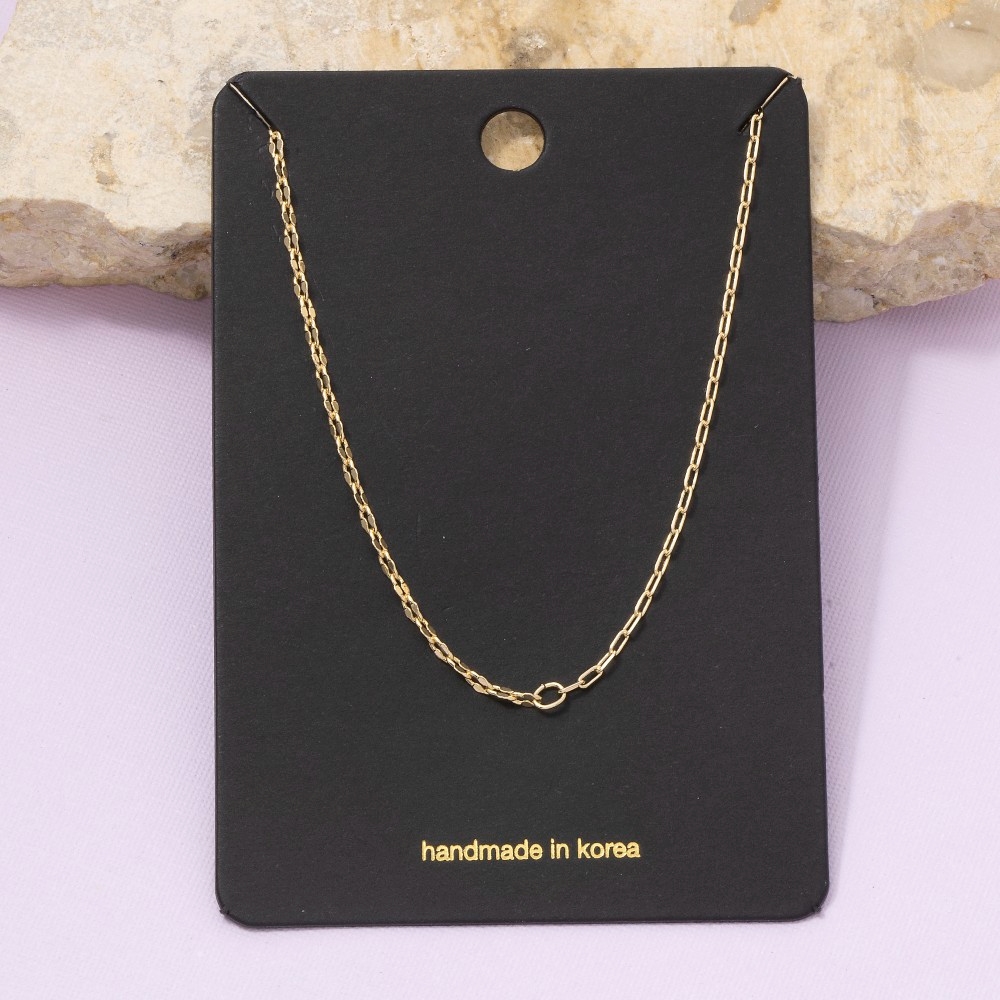 Effortlessly elevate your style, this chain necklace radiates a sleek gold dainty paperclip design. A chic and sophisticated chain necklace that's perfect for dressing up or down. Available in G, TT. This item is sold in packs of 1.