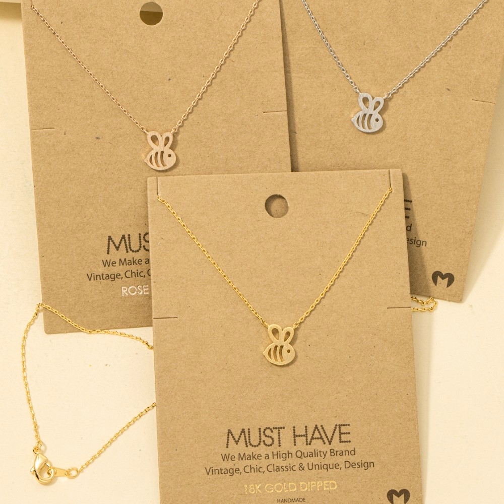 • A bold and daring choice that is sure to impress, this trending necklace flaunts a luxurious gold dipped bumblebee pendant necklace design. Infuse a hint of luxury into your daily attire with this versatile trending necklace, a must-have for those who appreciate timeless elegance. Available in G, R, S. This item is sold in packs of 1.