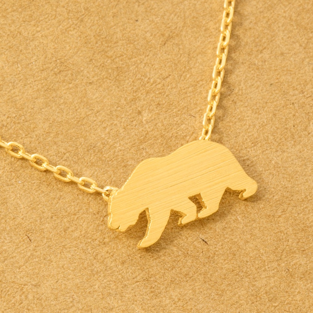 A modern classic, this trending necklace radiates a sleek gold dipped california bear pendant necklace design. Perfect for adding some texture and dimension to any outfit, this trending necklace is a must-have. Available in G, S and R. This item is sold in packs of 1.