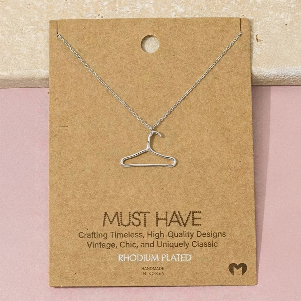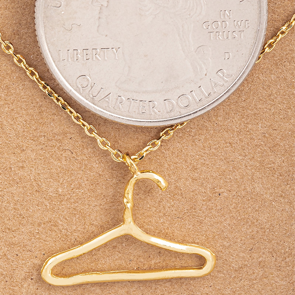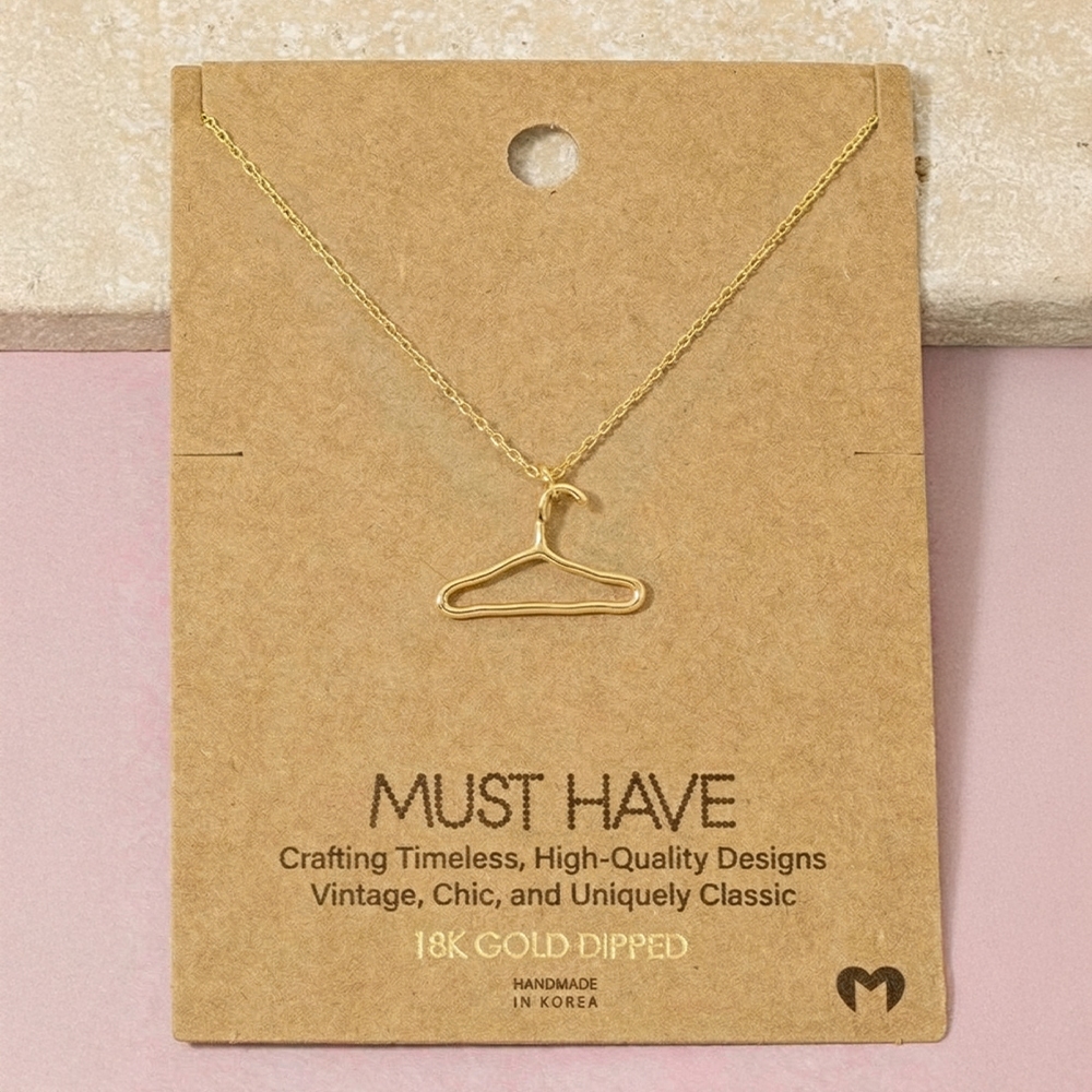 • Bold and daring, this pendant necklace introduces an exceptional gold dipped clothes hanger design. Upgrade your fashion game with this versatile pendant necklace, a timeless addition that complements any outfit seamlessly. Available in G, S. This item is sold in packs of 12.