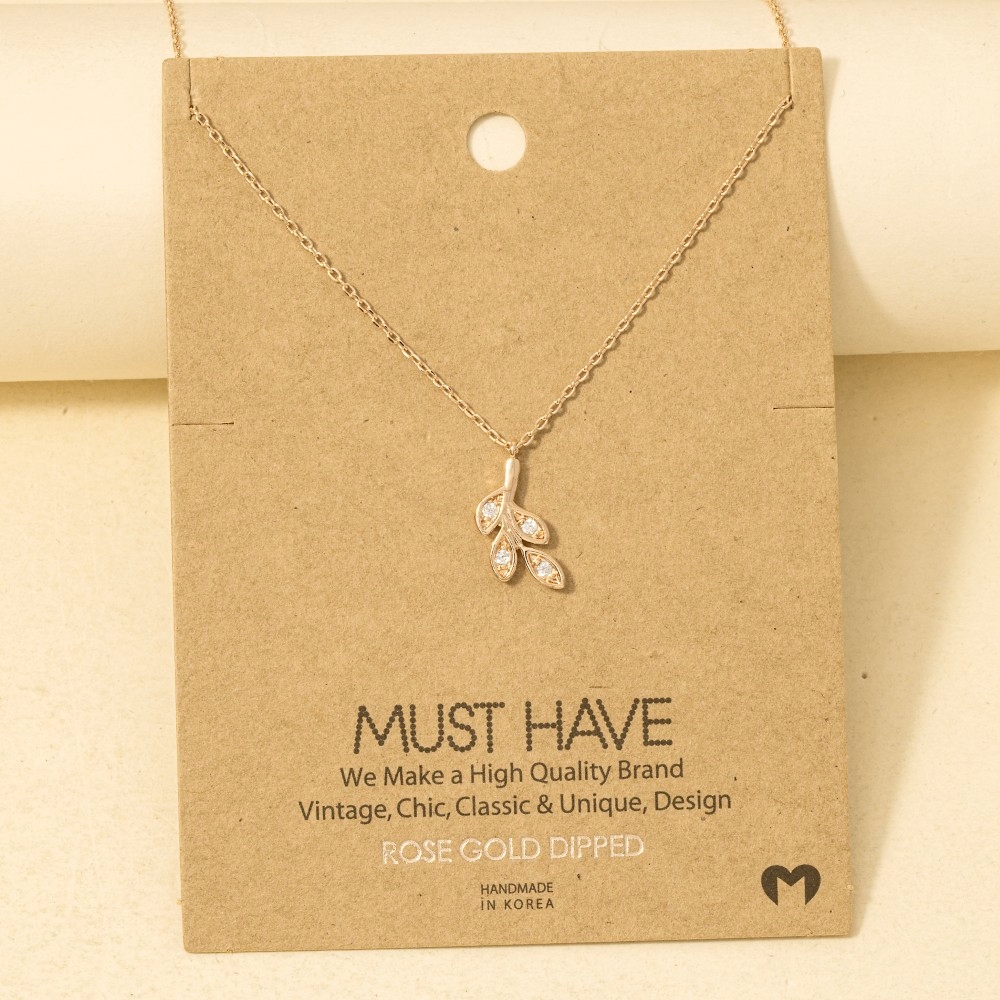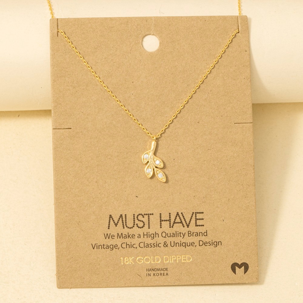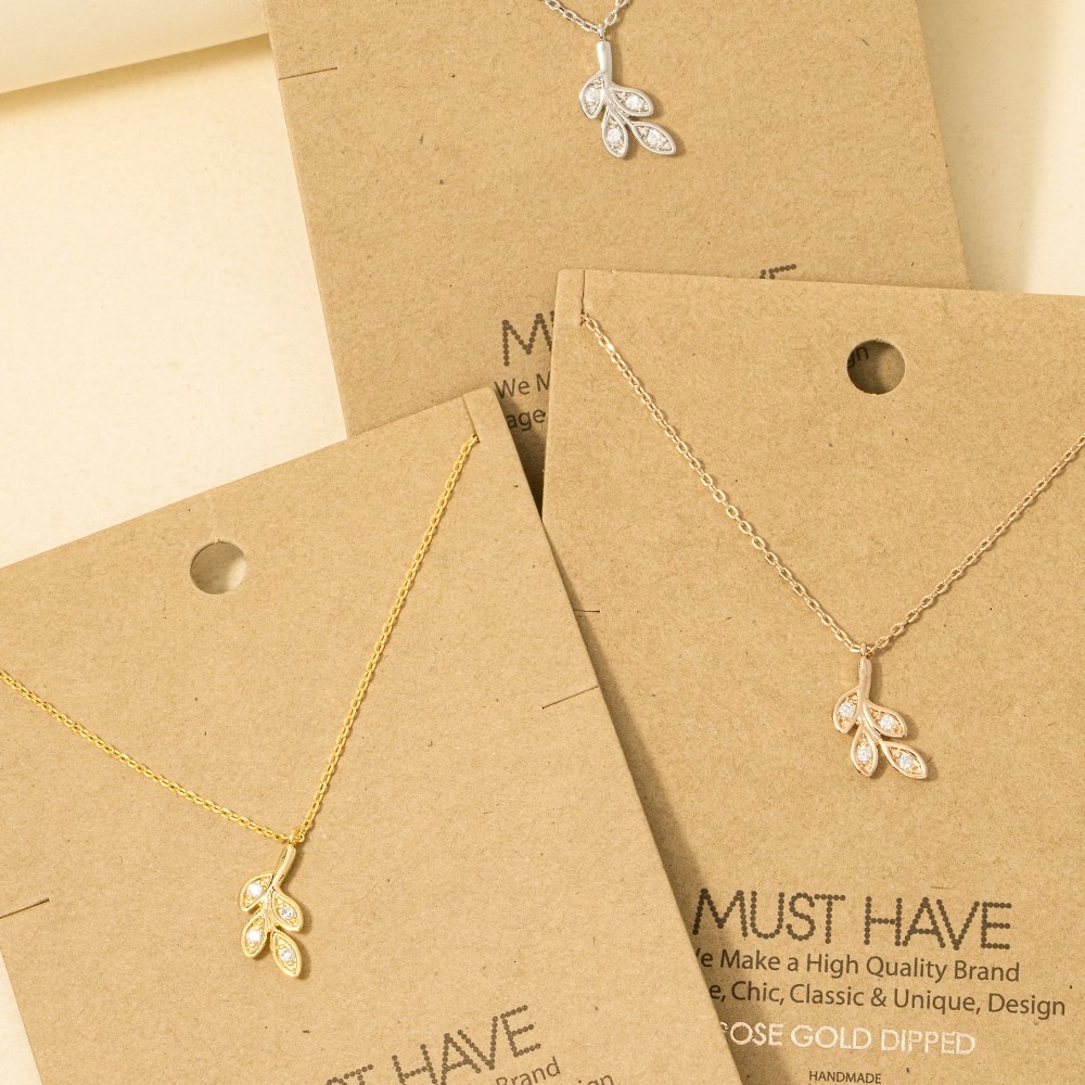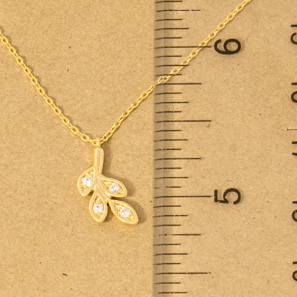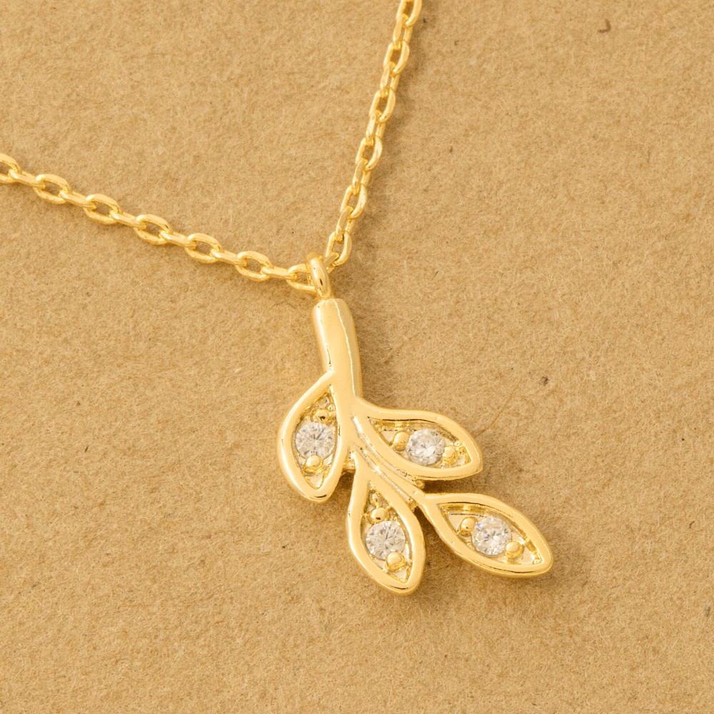 The perfect way to add some sparkle to your outfit, this trending necklace presents a striking gold dipped cubic zirconia leaves pendant necklace design. The perfect way to elevate any outfit, this trending necklace adds a touch of elegance and style. Available in G, R, S. This item is sold in packs of 1.