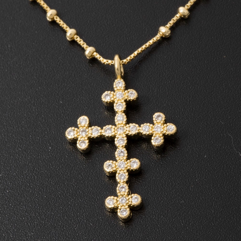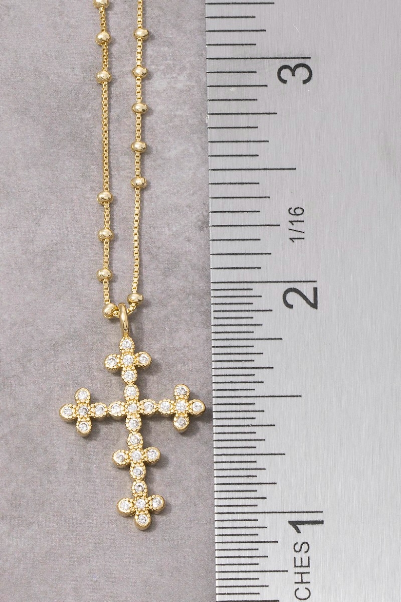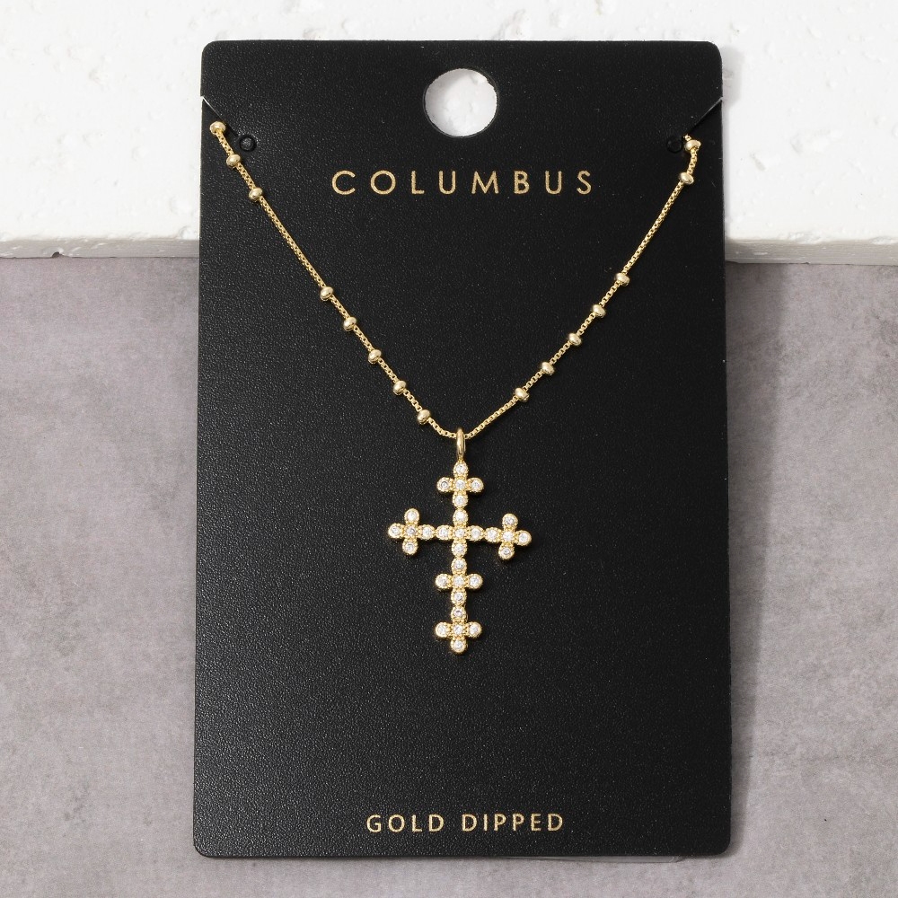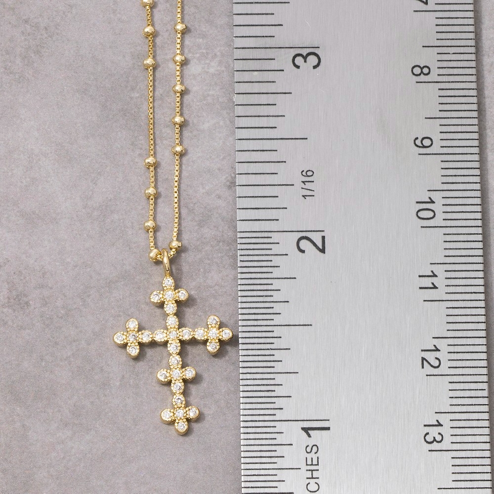 This piece is designed to be both stylish and functional, this necklace radiates a sleek gold dipped cz ornate cross pendant design. It also includes a cubic zirconia. Master the art of accessorizing with this versatile necklace, a key element for achieving a chic and polished look. Available in Gold. This item is sold in packs of 1.