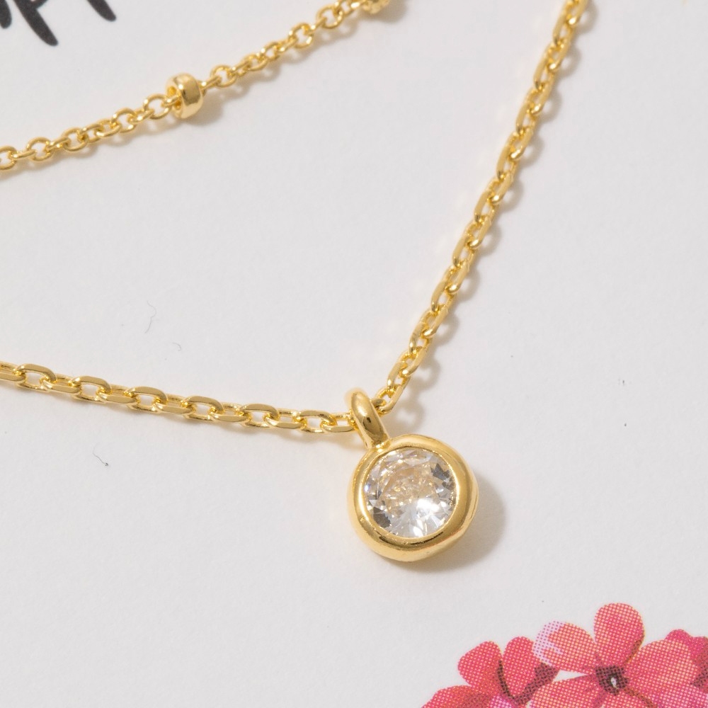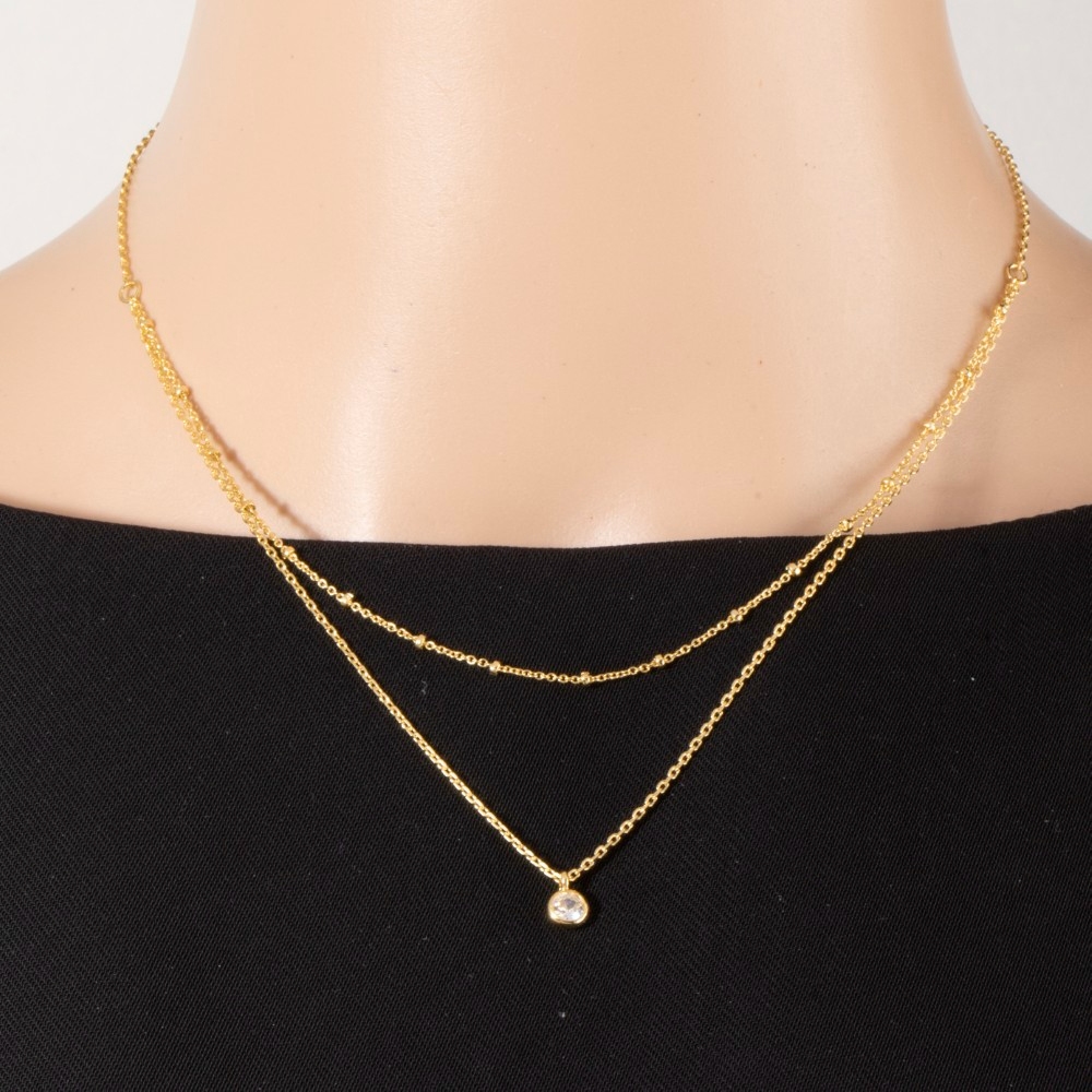 - Add a touch of luxury to any outfit, this chain necklace features an exceptional gold dipped dainty chain layered cubic zirconia charm necklace design. Elevate your style effortlessly with this versatile chain necklace, enhancing the appeal of any ensemble. Available in GDCRY, RHCRY. This item is sold in packs of 1.