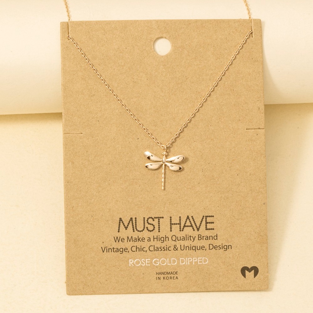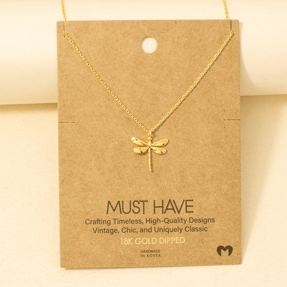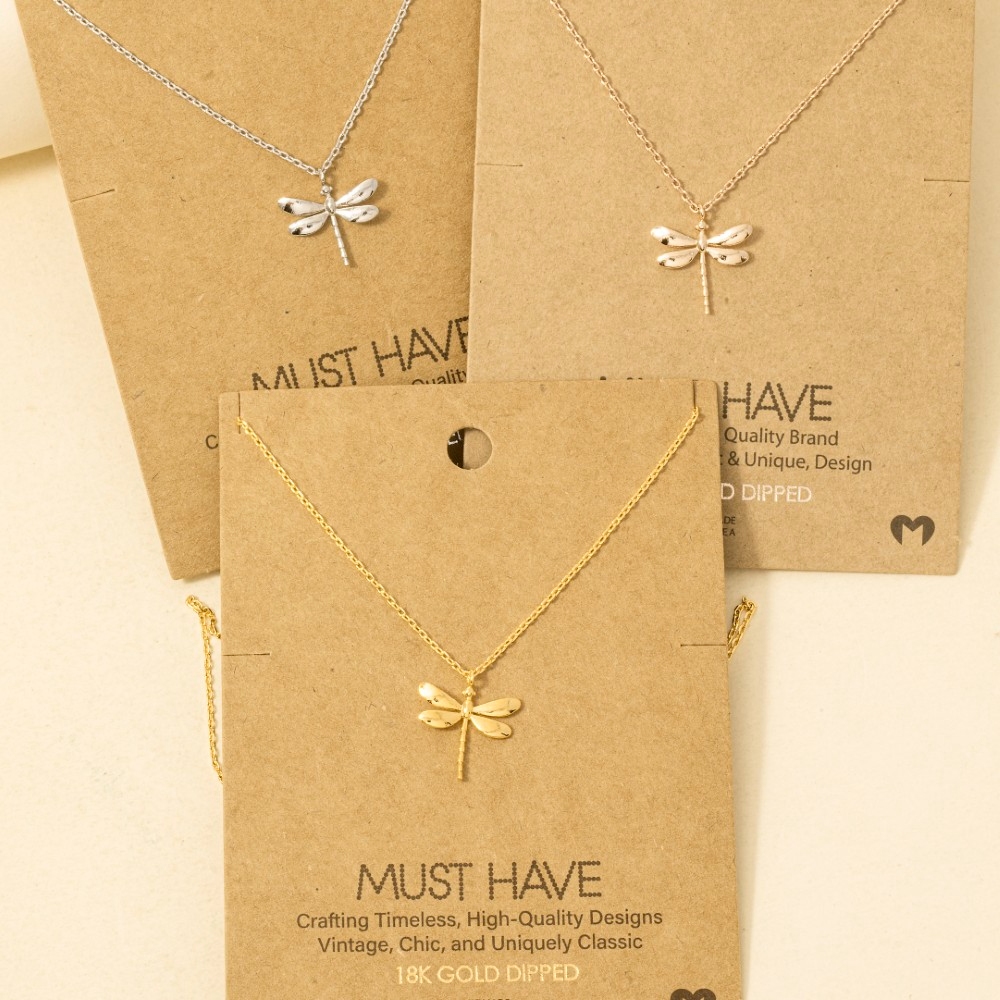 Elevate any look, this necklace presents a striking gold dipped dragon fly pendant design. Infuse a hint of luxury into your daily attire with this versatile necklace, a must-have for those who appreciate timeless elegance. Available in G, R, S. This item is sold in packs of 1.