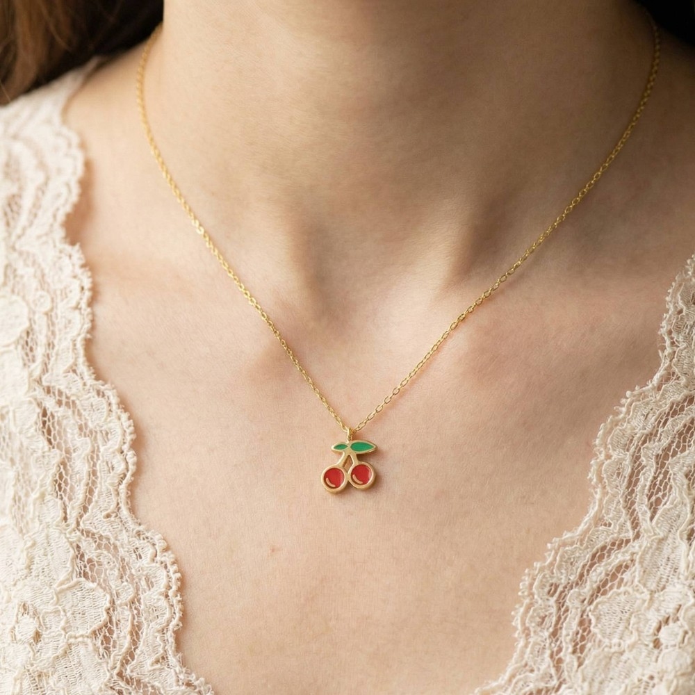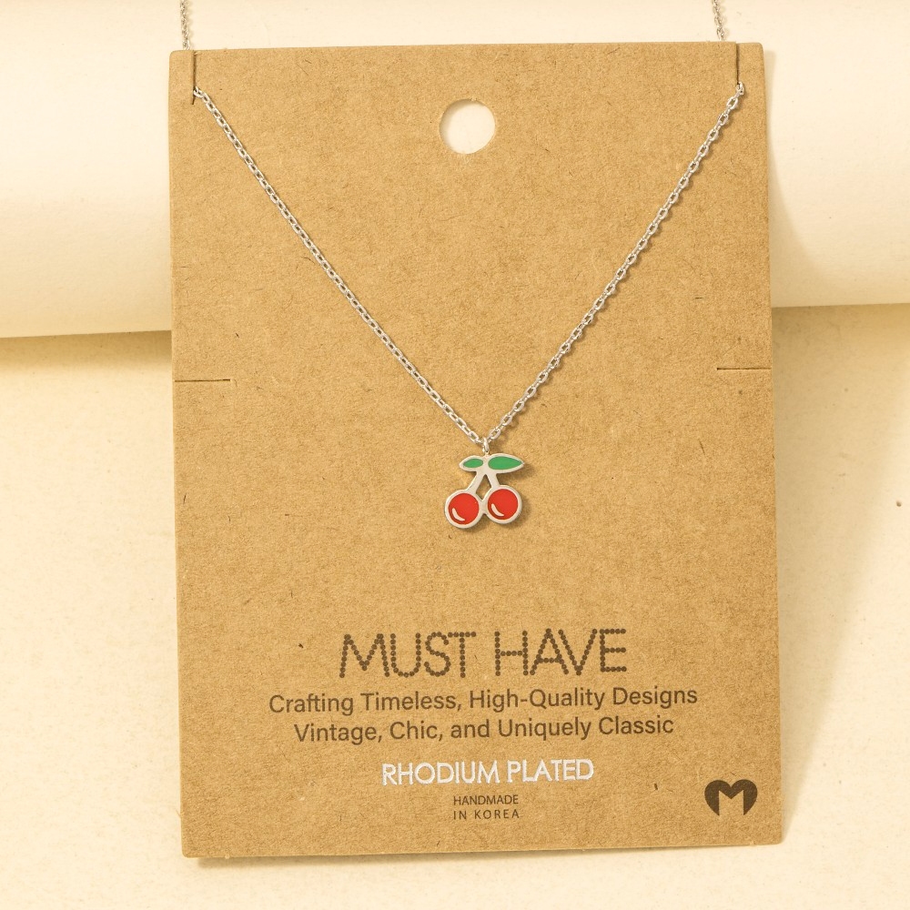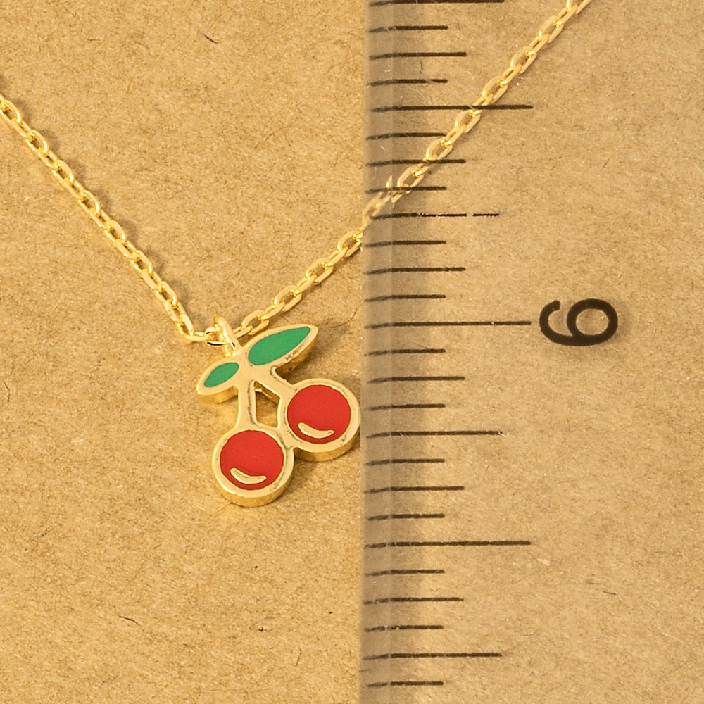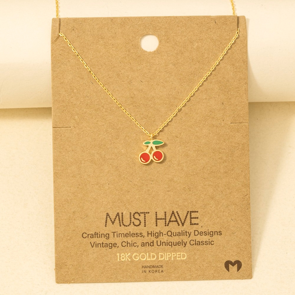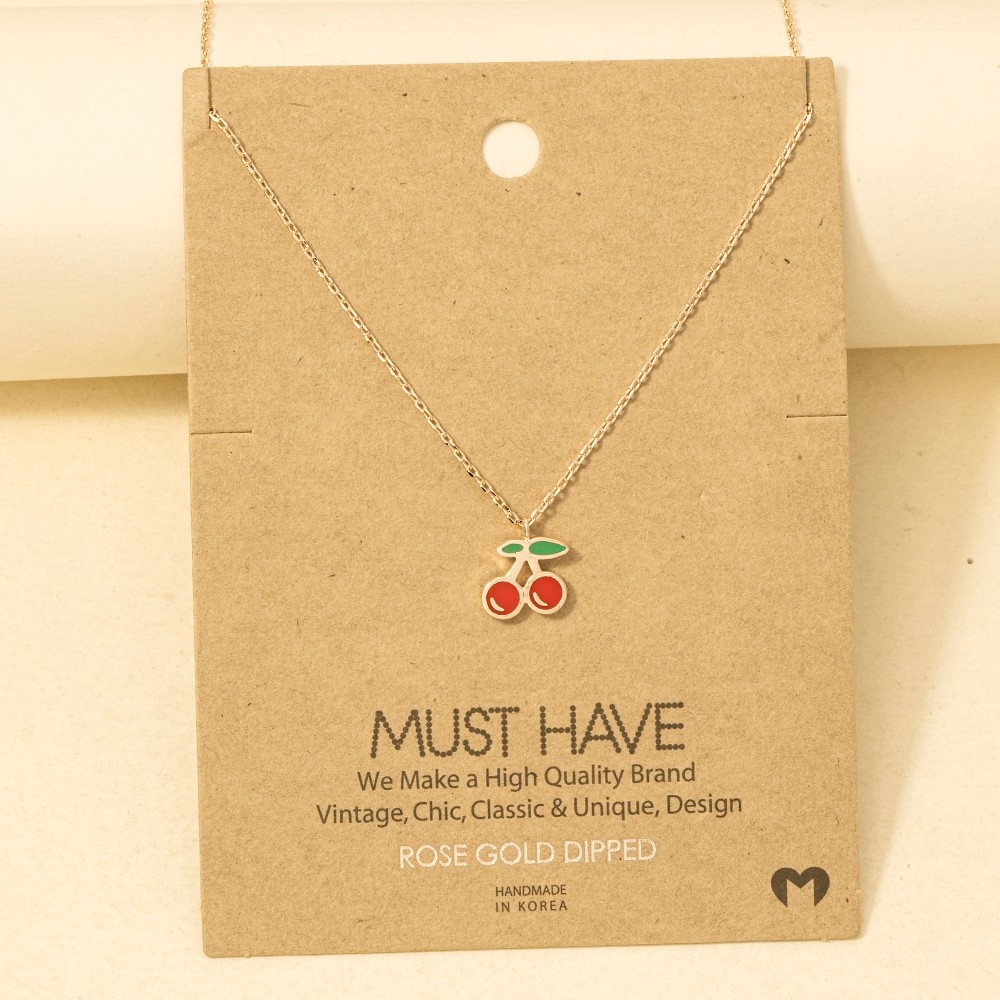Chic, sophisticated, and always in style, this necklace showcases a breathtaking gold dipped epoxy cherry pendant design. Elevate your outfit with this stylish necklace that's perfect for any occasion. Available in G, R, S. This item is sold in packs of 1.