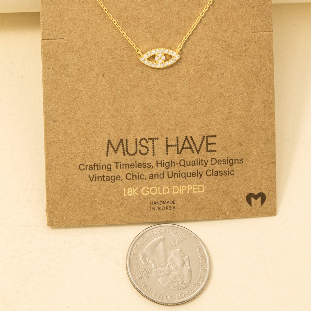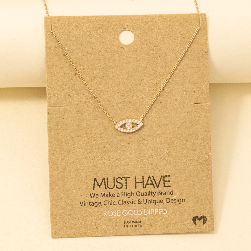 • Effortlessly chic and always on-trend, this trending necklace flaunts a luxurious gold dipped evil eye jewel pendant necklace design. This item is ideal for those who want to add some personality to their wardrobe without being too bold. Available in G, R, S. This item is sold in packs of 1.
