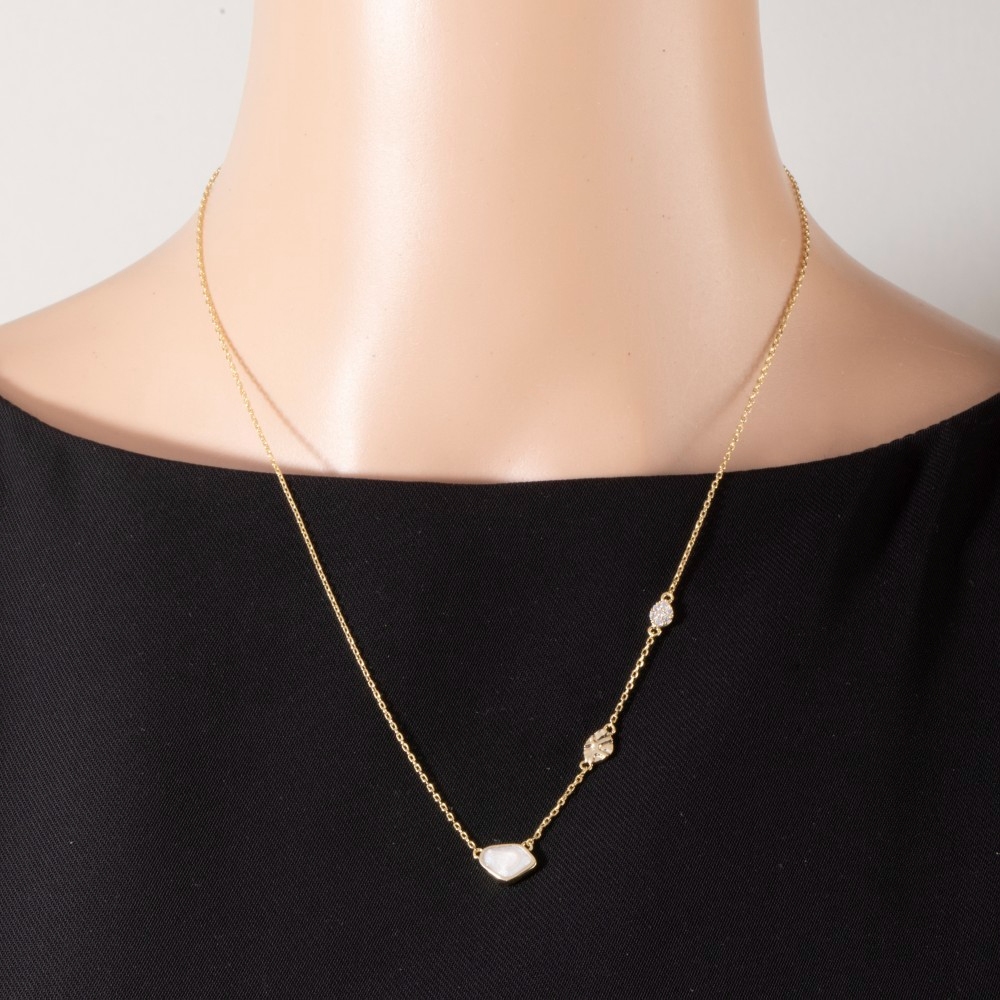 - This season's hottest pendant necklace, this pendant necklace evokes a captivating gold dipped pearl stone cubic zirconia charm design. This pendant necklace is the perfect way to add a touch of elegance to any outfit. This item is sold in packs of 1.