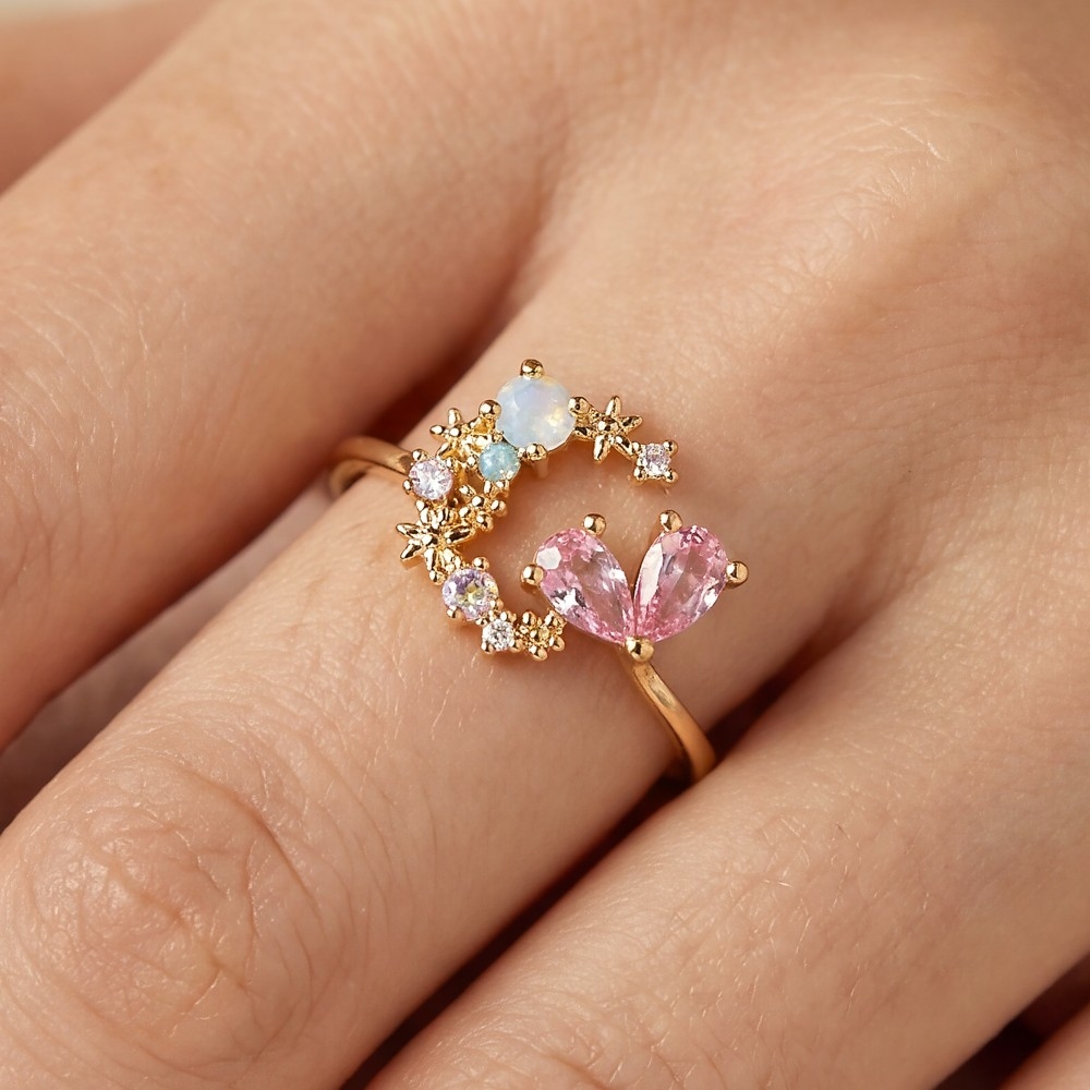 Gold Dipped Cz Pave Stars Moon Station Charms Necklace