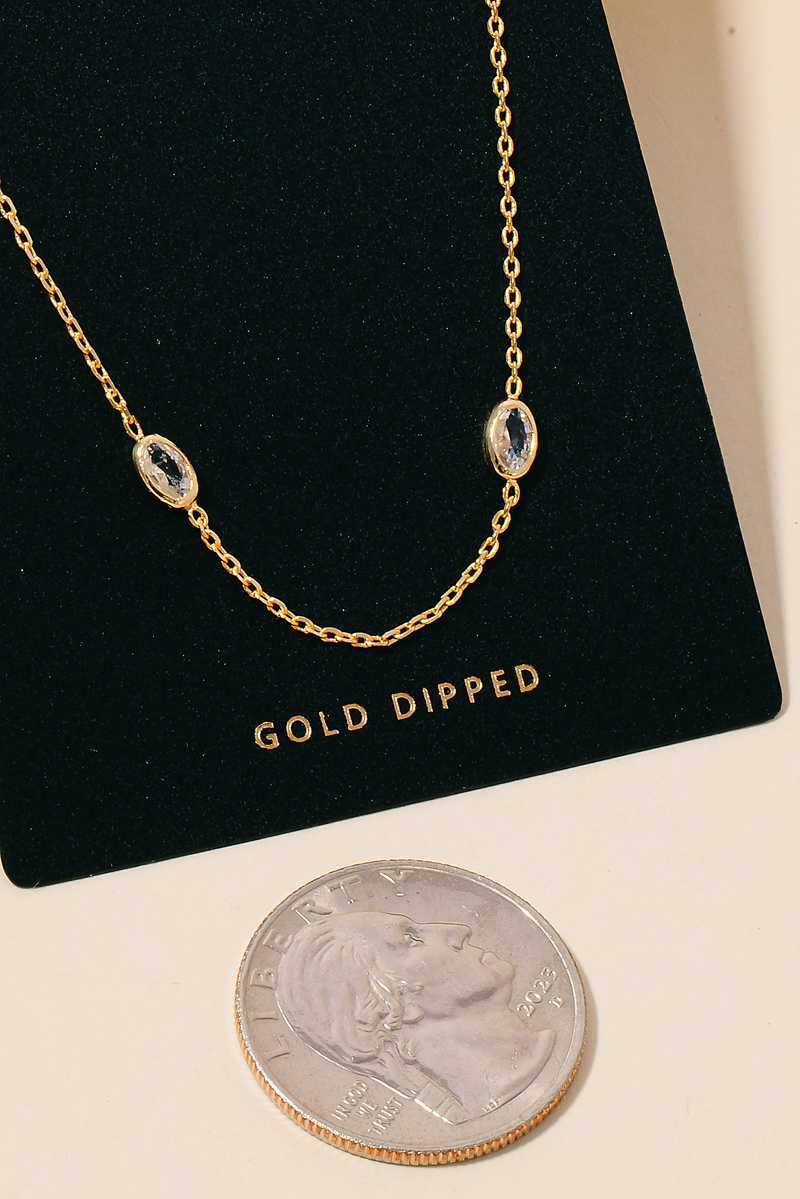 - The perfect way to complete any outfit, this necklace incorporates a flawless dainty chain oval rhinestone station design. Redefine your wardrobe with this versatile necklace, a timeless addition that brings an air of sophistication to any look. Available in G and S. Columbus Jewelry. This item is sold in packs of 1.
