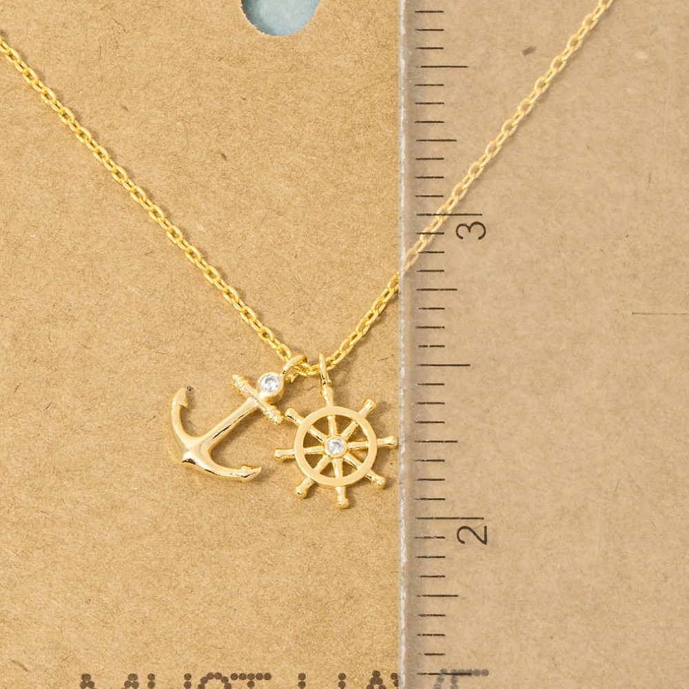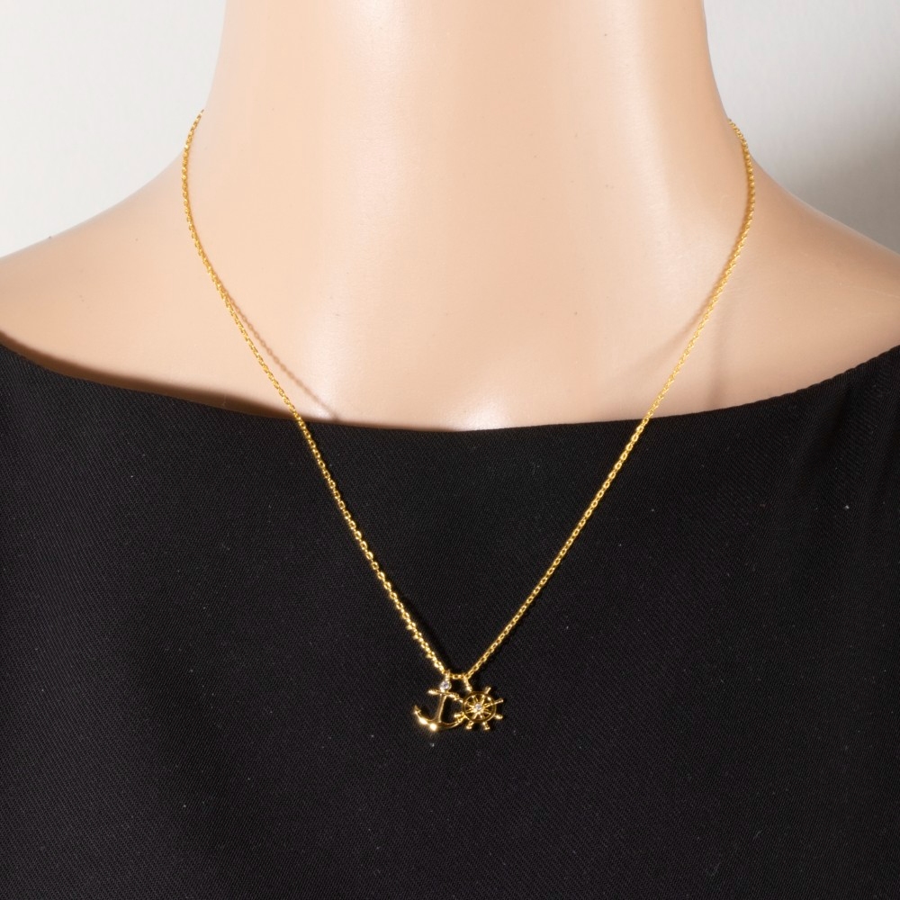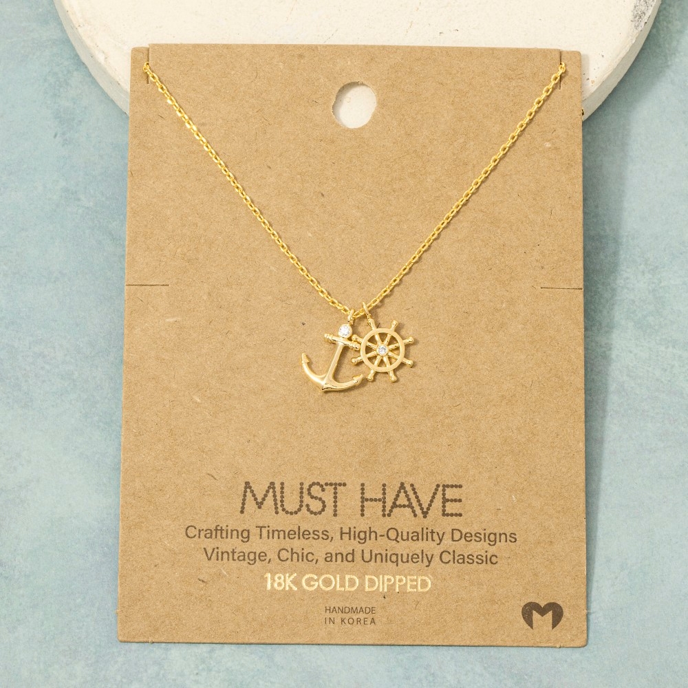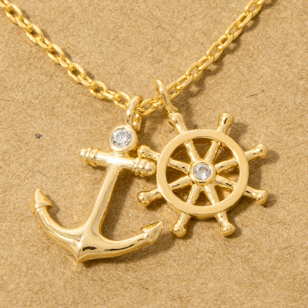 • A stunning addition to any jewelry collection, this necklace incorporates a flawless gold dipped anchor and wheel charms design. Elevate your personal style effortlessly with this versatile necklace, an essential component for a refined wardrobe. Available in G, R, S. This item is sold in packs of 1.