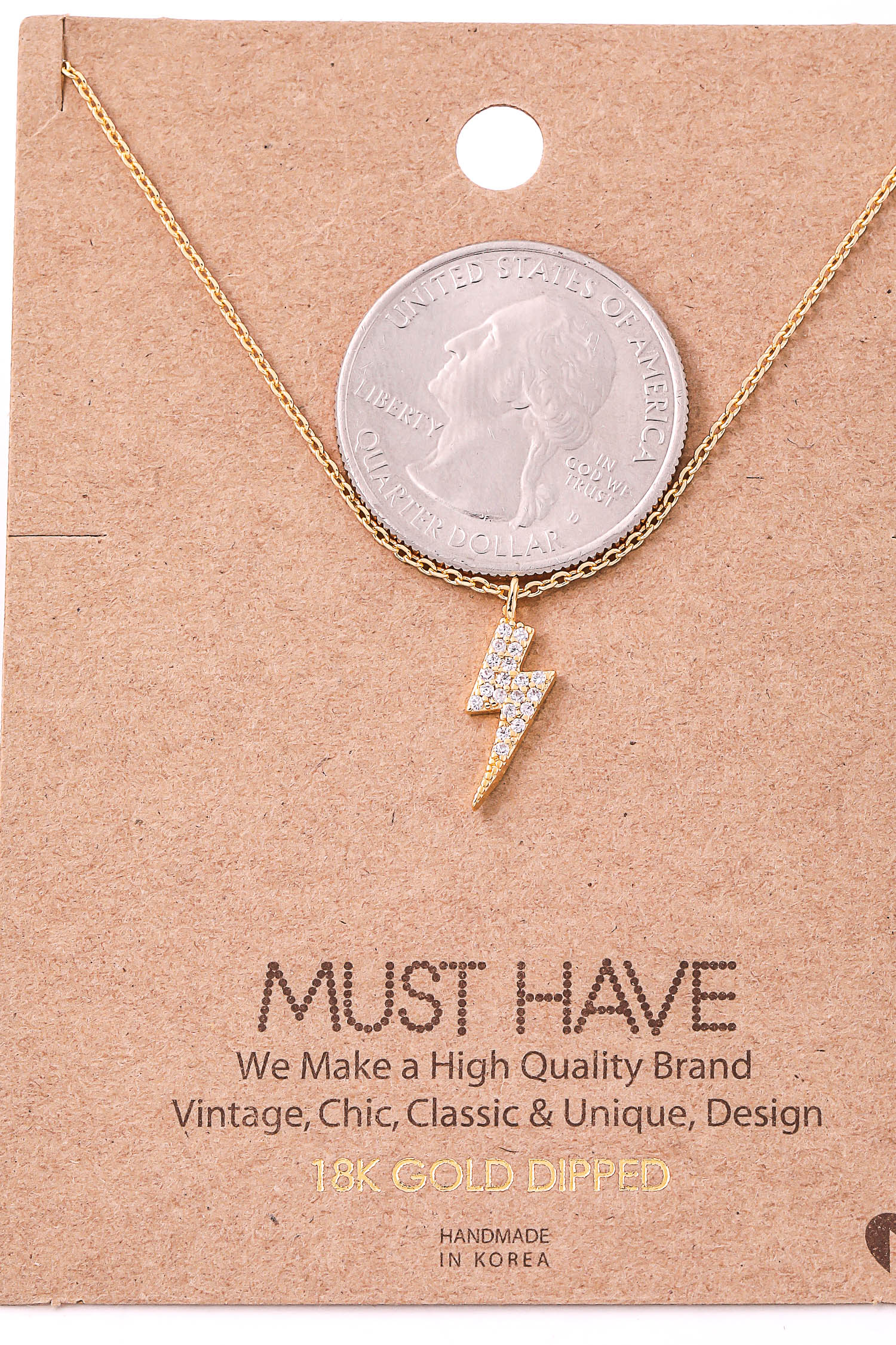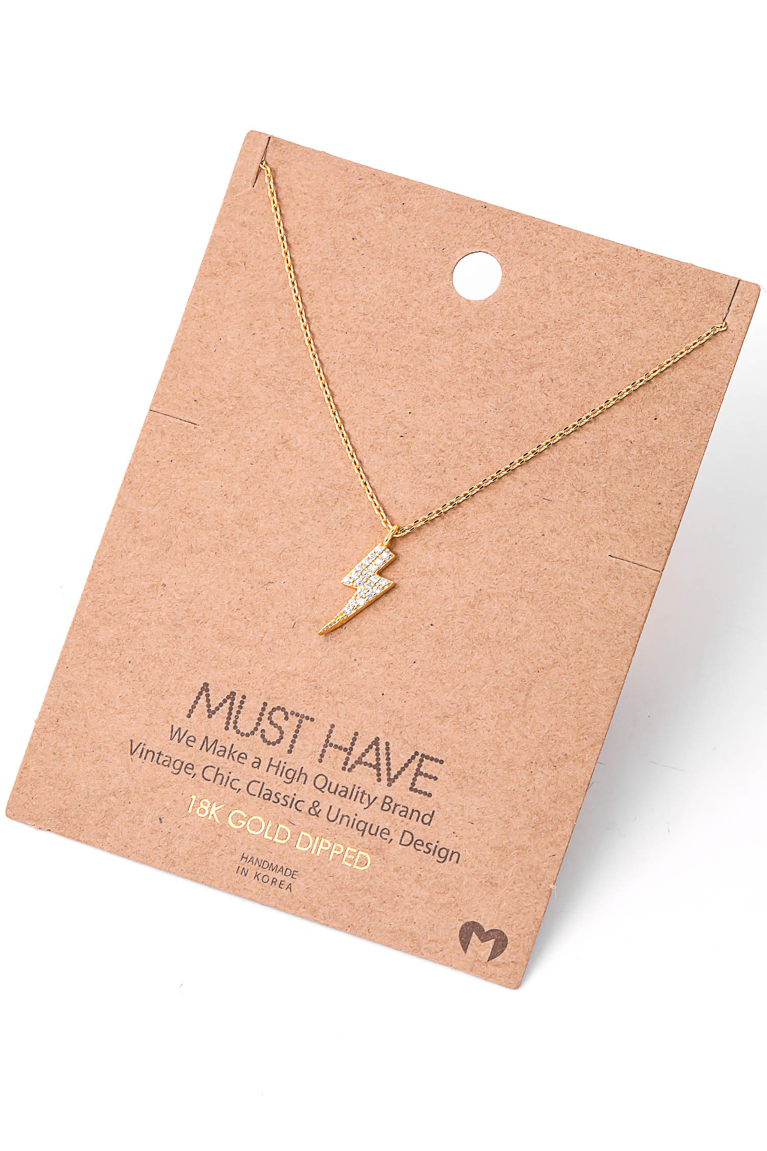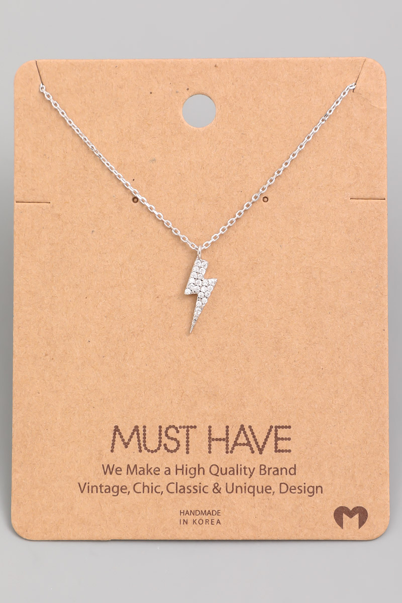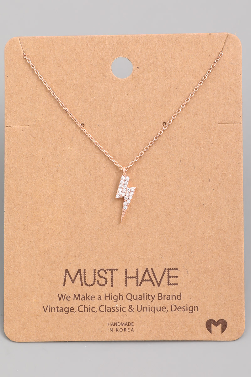 Gold Dipped Cz Lightning Bolt Necklace