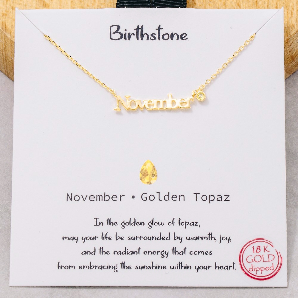 • This piece is the epitome of sophistication and elegance, this pendant necklace shows off a distinctive gold dipped cubic zirconia month birthstone design. Make a lasting impression with this versatile pendant necklace, a subtle yet impactful addition to your fashion repertoire. Available in APRGD, AUGGD, DECGD, FEBGD, JANGD, JULGD, JUNGD, MARGD, MAYGD, NOVGD, OCTGD, SEPGD. This item is sold in packs of 1.