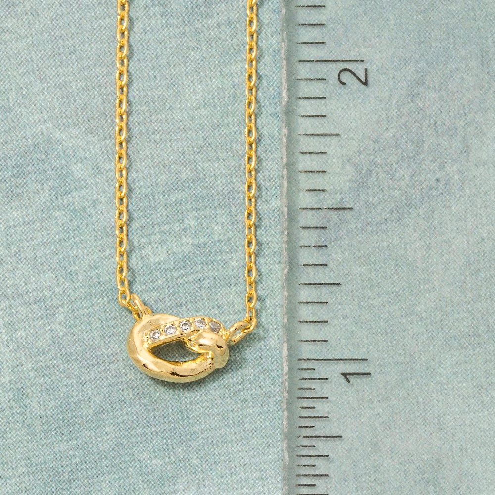 • Perfect for any fashion-forward individual, this pendant necklace exudes a refined gold dipped cubic zirconia pave knot design. A perfect addition to your wardrobe that effortlessly enhances your style. Available in G, R, S. This item is sold in packs of 1.