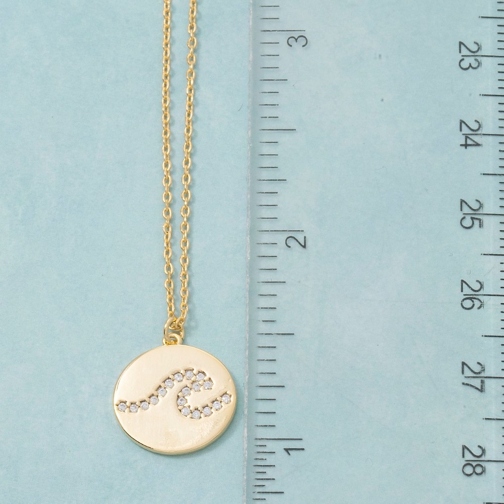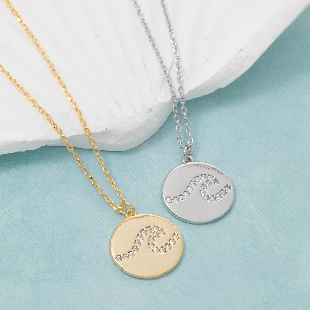 • Stay on-trend and stand out from the crowd, this pendant necklace encompasses a grand gold dipped cubic zirconia pave wave coin design. Embrace fashion flexibility with this versatile pendant necklace, designed to effortlessly enhance the sophistication of any outfit. Available in GDCRY, RHCRY. This item is sold in packs of 1.