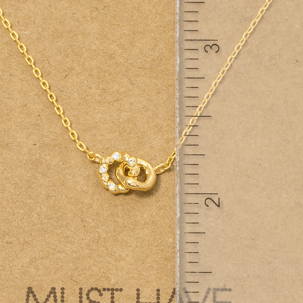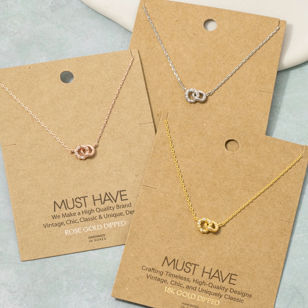 • A versatile and stylish addition to any wardrobe, this pendant necklace comes with a special gold dipped cubic zirconia studded hoop link design. Elevate your style effortlessly with this versatile pendant necklace, enhancing the appeal of any ensemble. Available in G, R, S. This item is sold in packs of 1.
