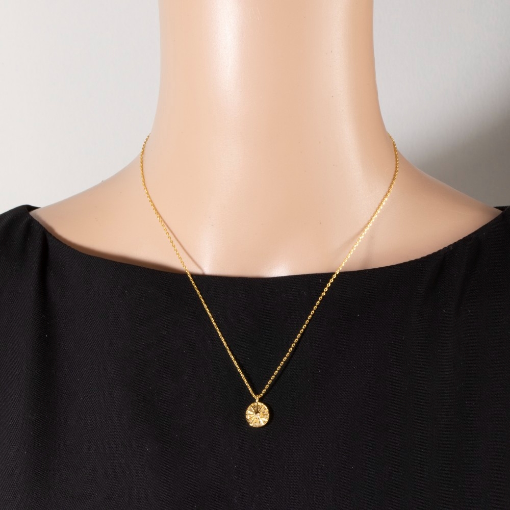- An instant wardrobe staple, this pendant necklace exudes a refined gold dipped oval coin design. Perfect for dressing up or down, this versatile pendant necklace adds a touch of sophistication to any look. Available in G, R, S. This item is sold in packs of 1.