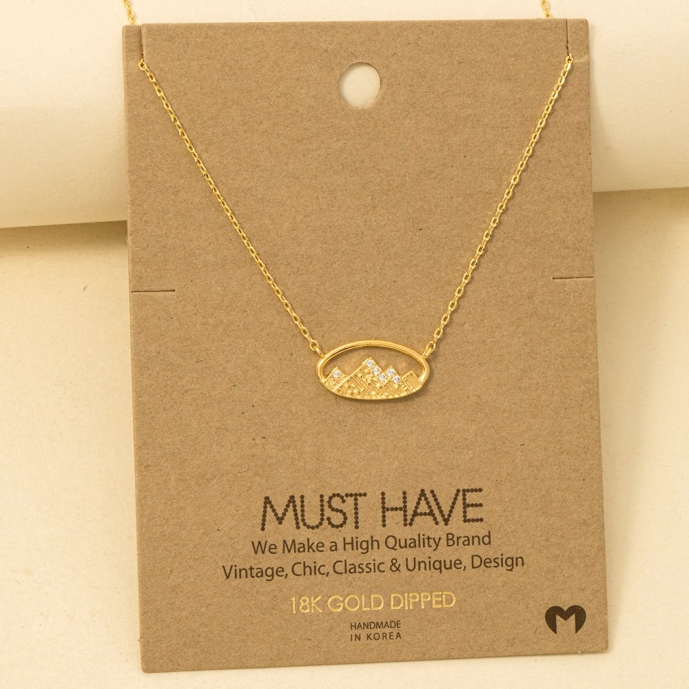 • Elevate your style with something unique and daring, this trending necklace incorporates a remarkable gold dipped oval mountain range charm necklace design. This item is perfect for anyone who loves to accessorize and add some personality to their outfits. Available in G, R, S. This item is sold in packs of 12.