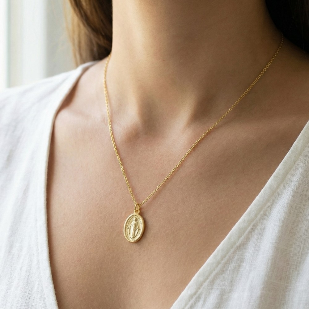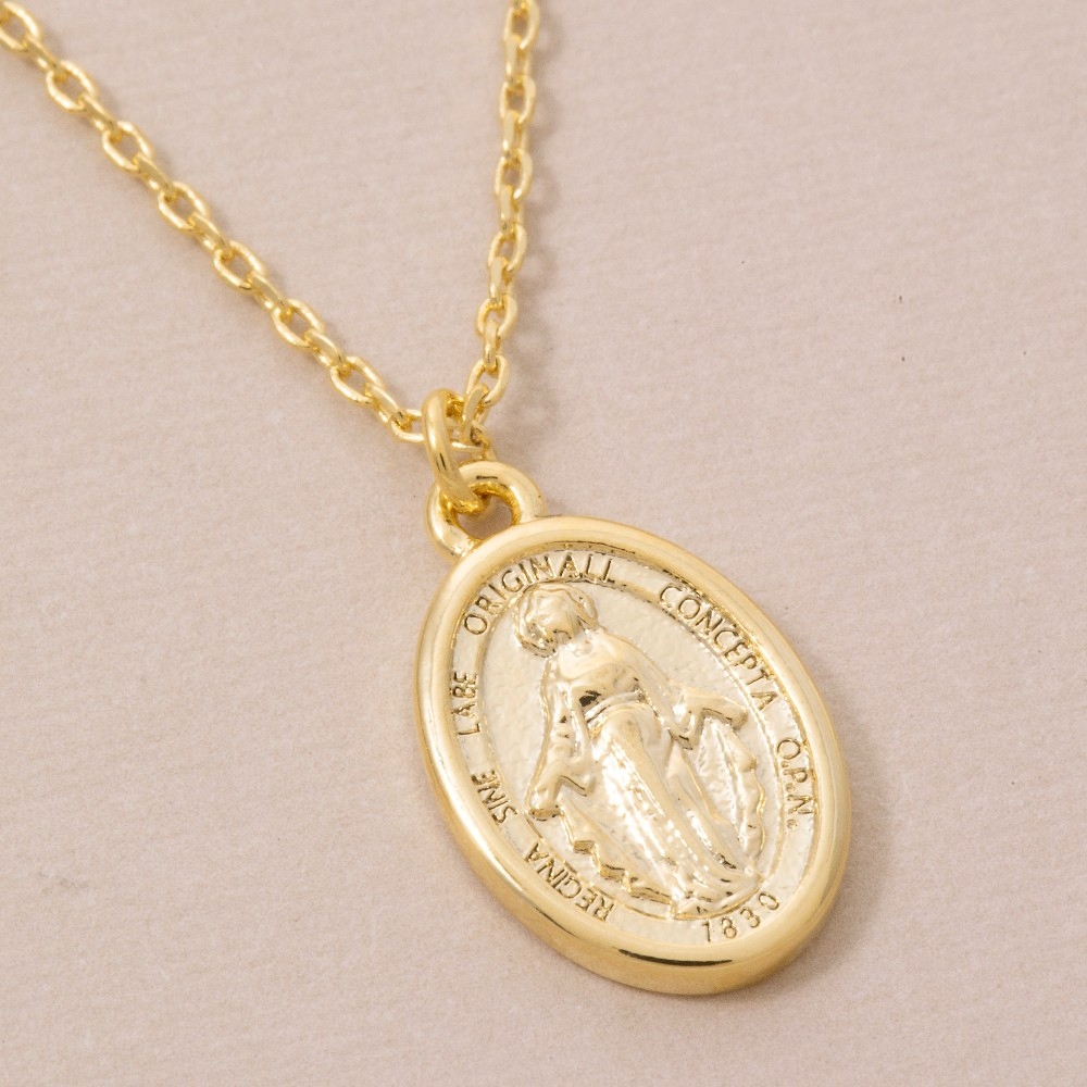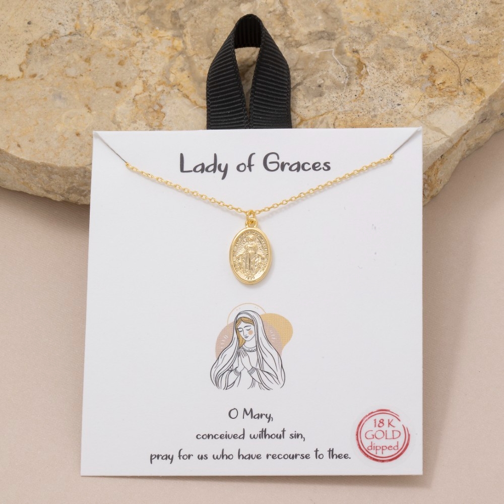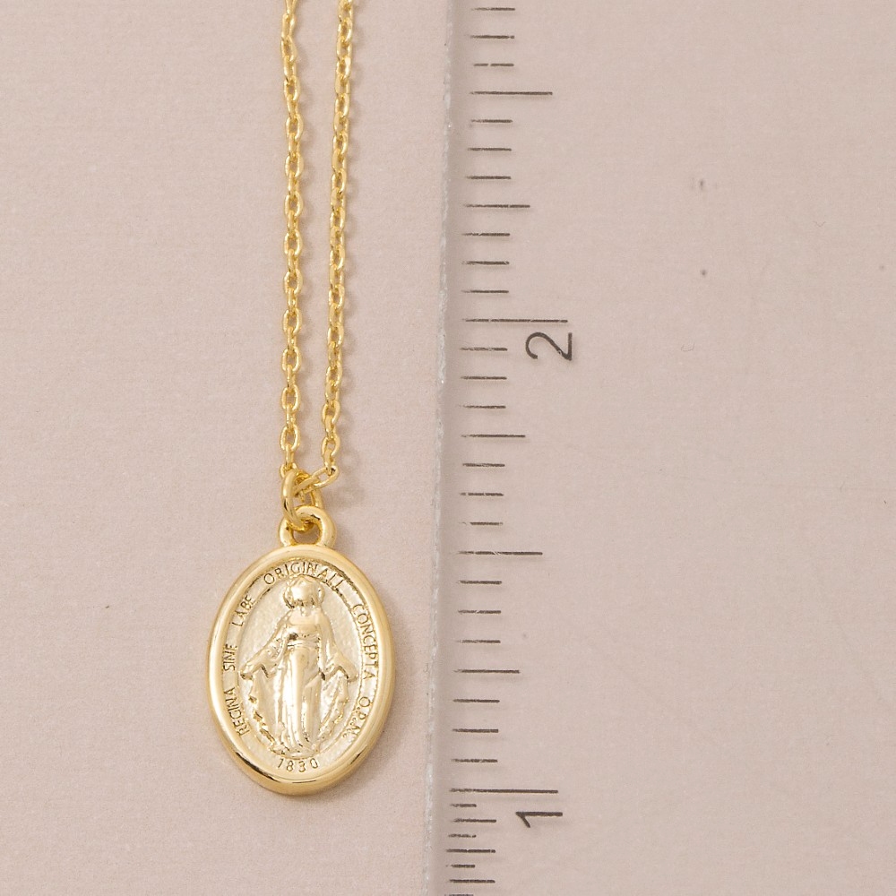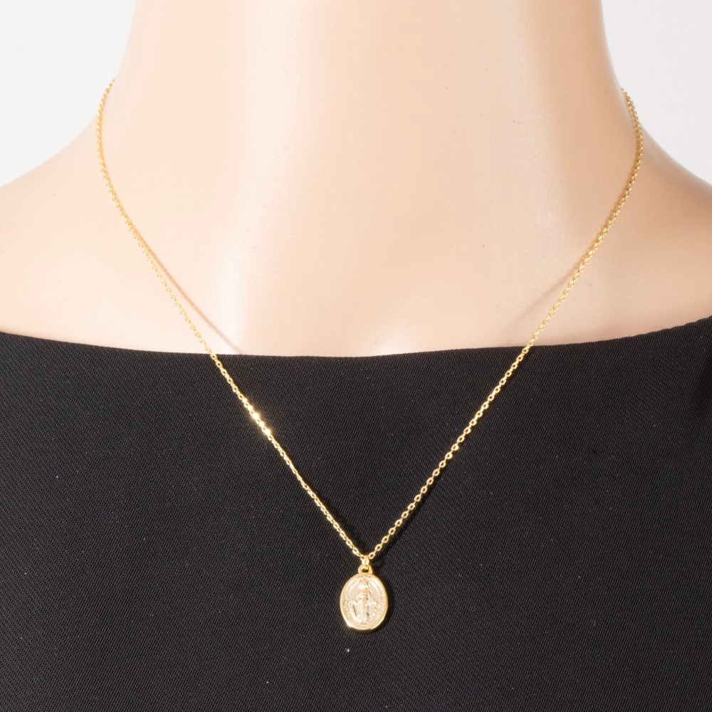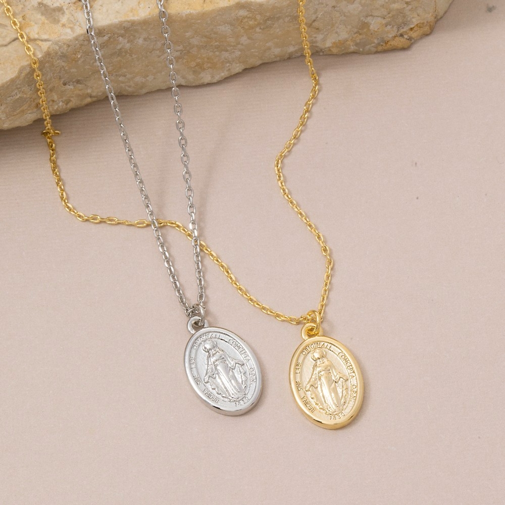 The perfect way to showcase your unique style, this pendant necklace possesses a fine gold dipped sainty mary design. Unlock endless styling possibilities with this versatile pendant necklace, creating a signature look that speaks volumes. Available in GD, RH. This item is sold in packs of 1.
