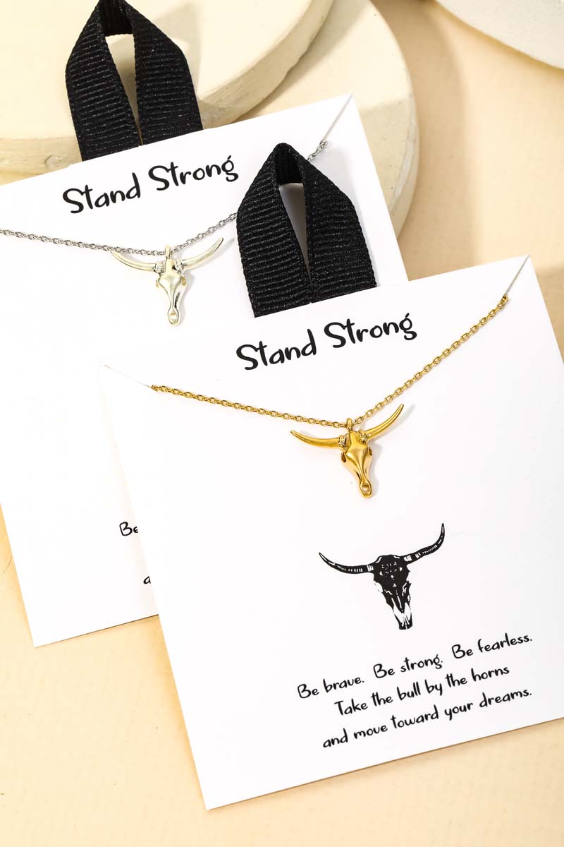 • This new stunning necklace that features a beautiful long horn pendant necklace design. Adds a chic touch to any outfit! This item is sold in packs of 1. Made In Korea.