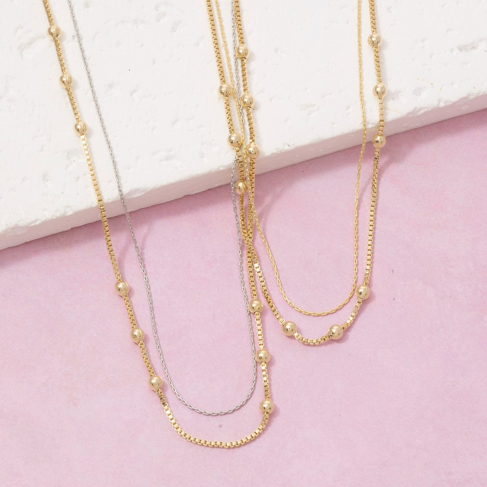 This piece is the perfect way to add some glamour to your look, this chain necklace incorporates a flawless gold layered ball station design. A stylish chain necklace that's perfect for complementing your favorite outfit. Available in G, TT. This item is sold in packs of 1.