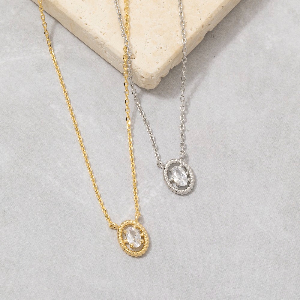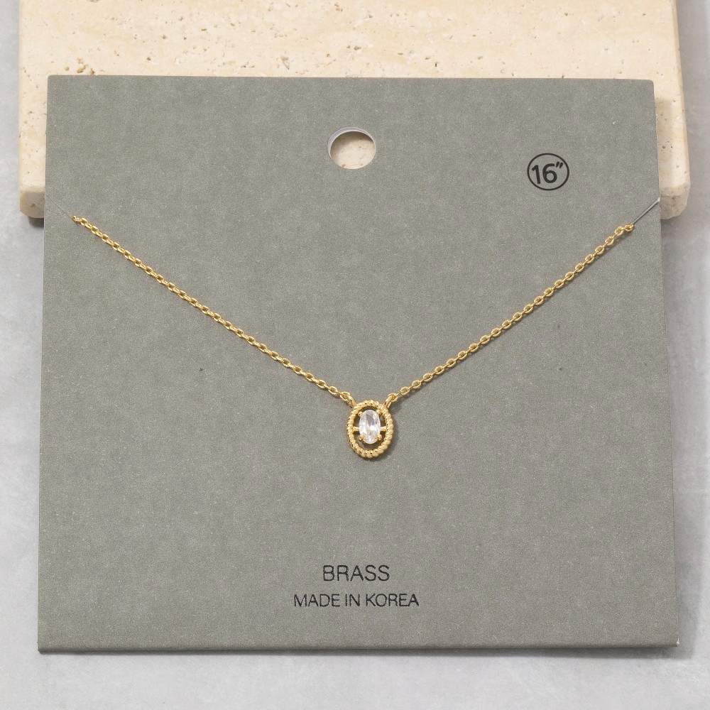 A timeless piece that you'll wear for years to come, this pendant necklace incorporates a remarkable gold oval cubic zirconia rope bezel design. Perfect for adding a pop of color or texture to any outfit, this pendant necklace is a must-have. Available in GDCRY, RHCRY. This item is sold in packs of 1.