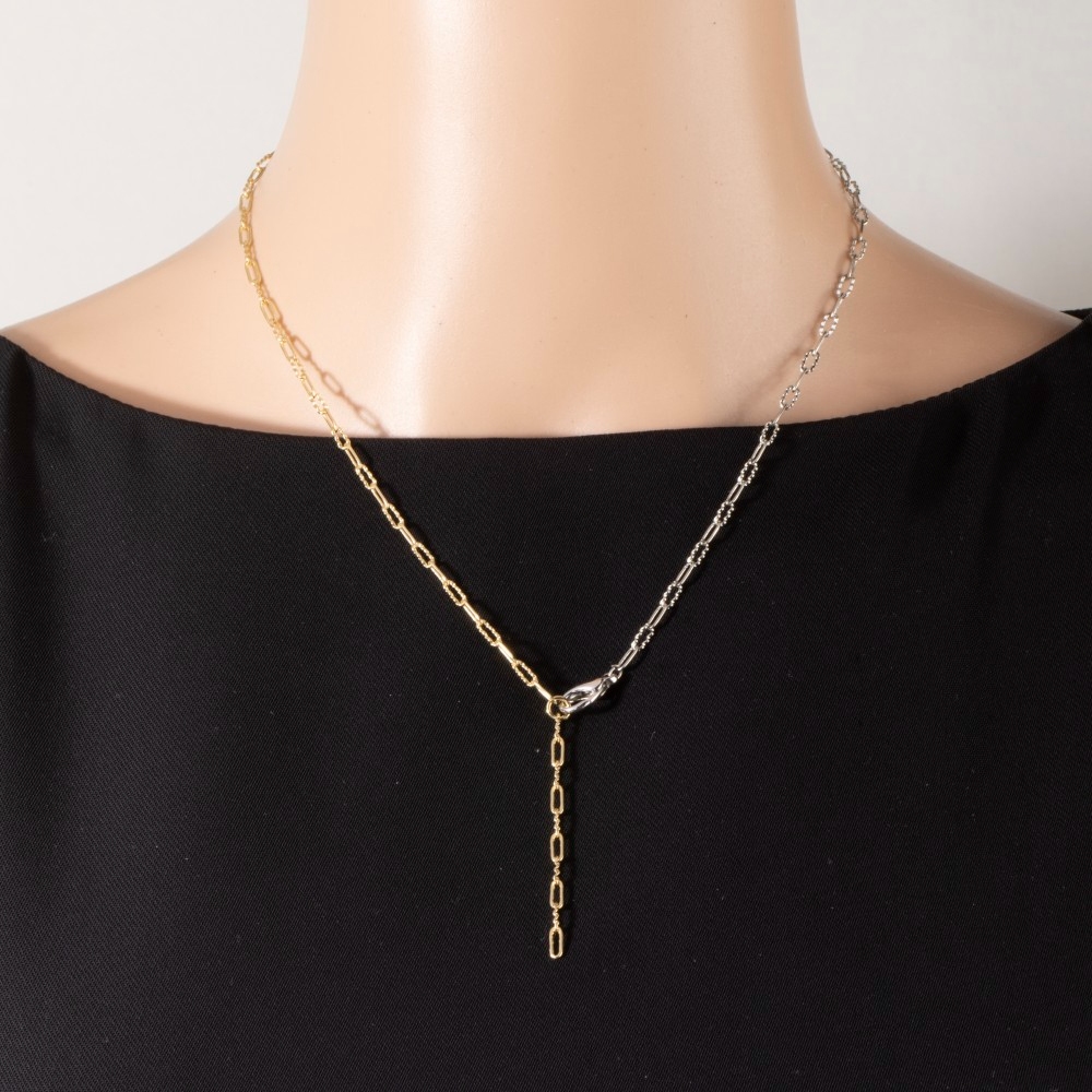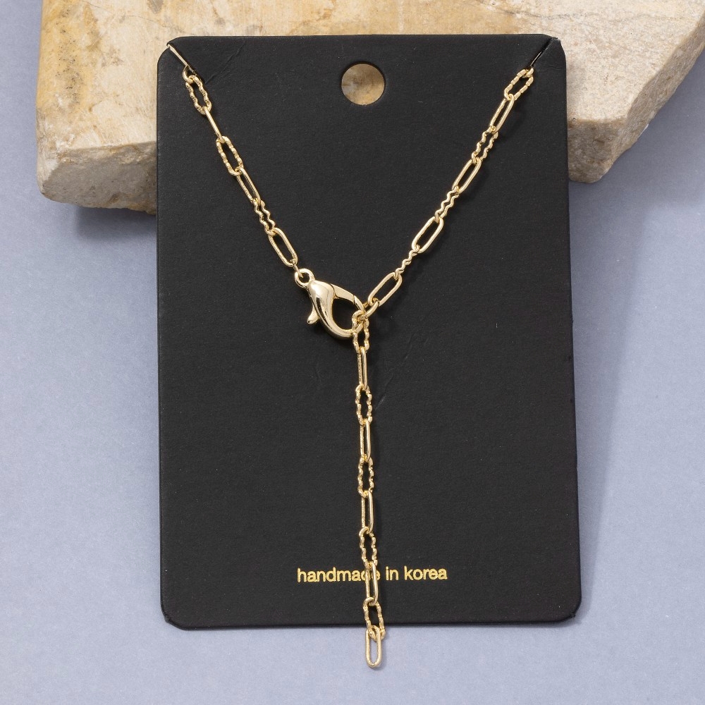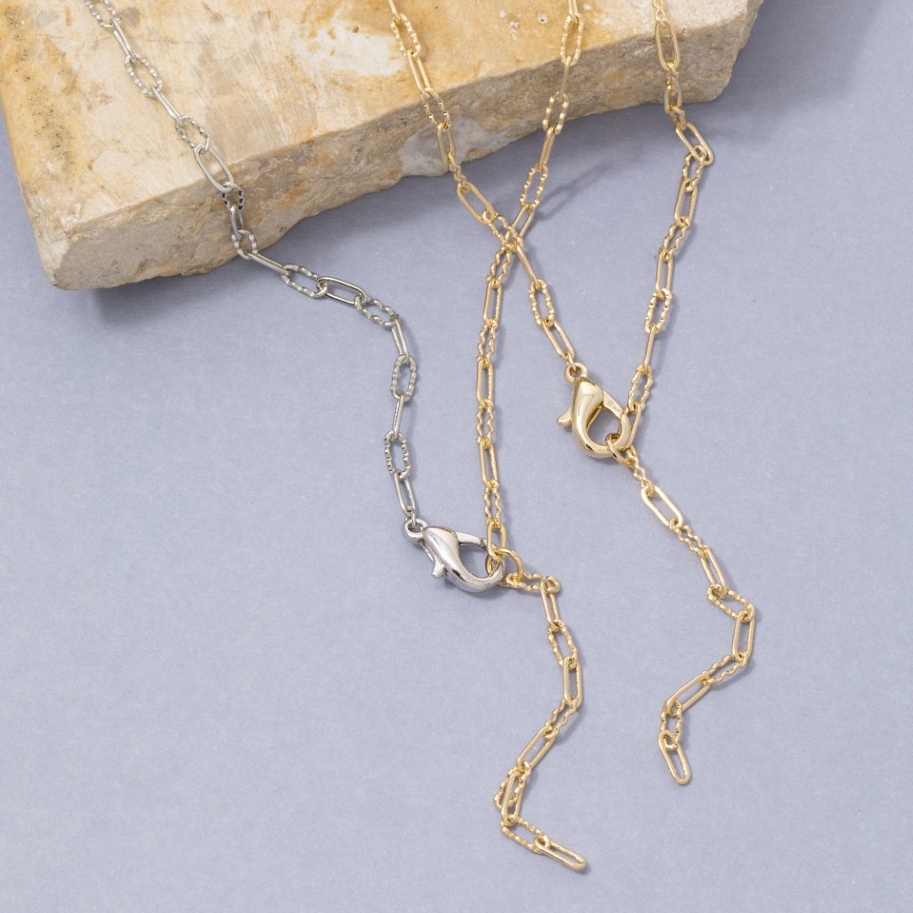 • Add a touch of elegance and glamour to your look, this necklace brings a one-of-a-kind gold paperclip chain lobster clasp y design. Perfect for adding some texture and dimension to any outfit, this necklace is a must-have. Available in G, TT. This item is sold in packs of 1.