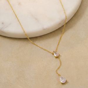 Gold Dipped Double Teardrop Pendant Y Necklace
