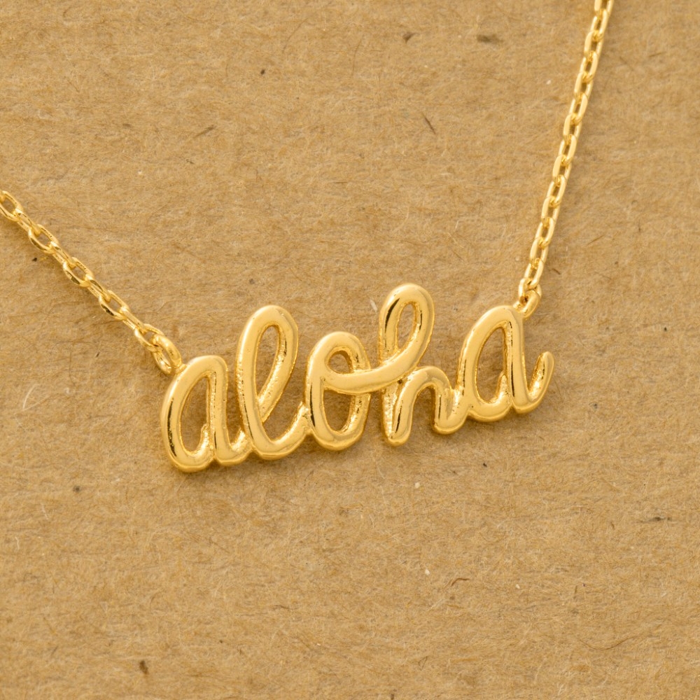 A true work of art, this trending necklace adds a distinctive handwritten aloha print necklace design. This trending necklace is the perfect finishing touch to any outfit, adding a touch of sophistication and glamour. Available in G, S and R. This item is sold in packs of 1.