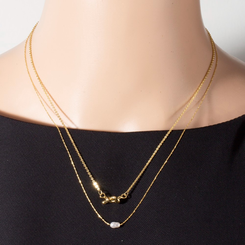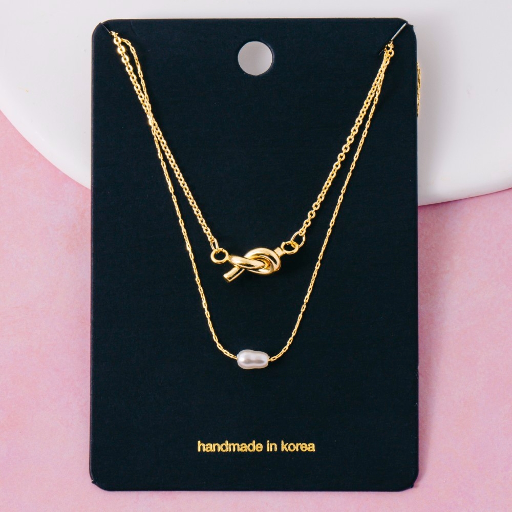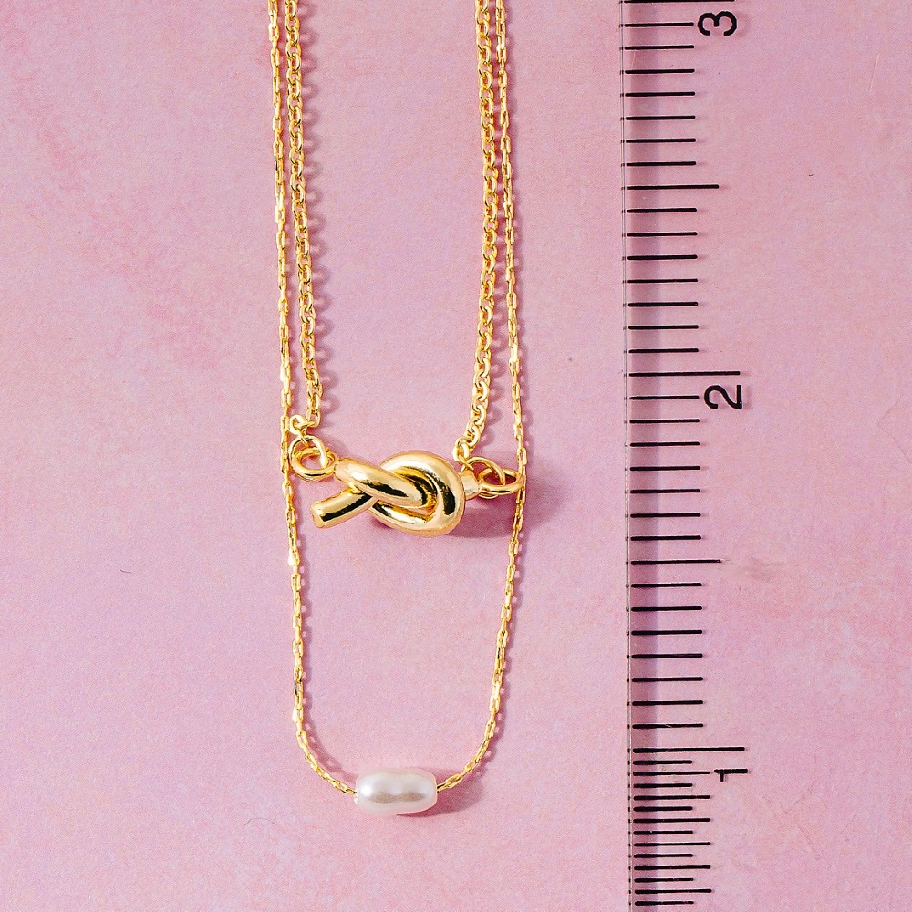 - This season's hottest pendant necklace, this pendant necklace adds a distinctive layered chain knot and pearl design. This item is the perfect way to add some texture and interest to any outfit. Available in G. This item is sold in packs of 12.