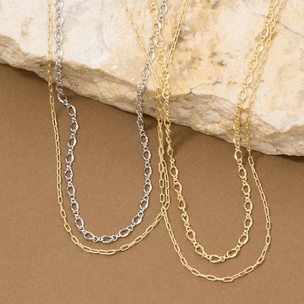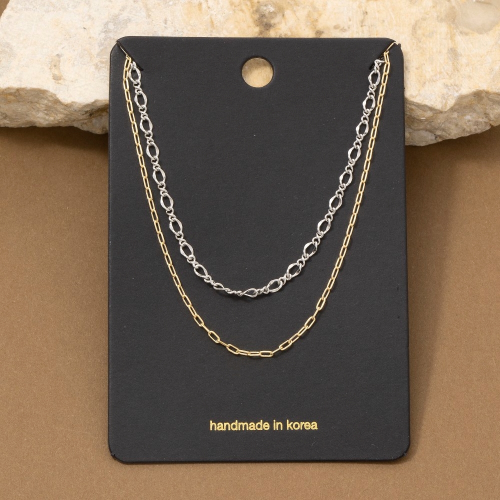 Guaranteed to add a touch of glamour to any outfit, this chain necklace comes with a special layered figaro set design. A must-have chain necklace for anyone who loves to add some flair to their outfits. Available in G, TT. This item is sold in packs of 1.