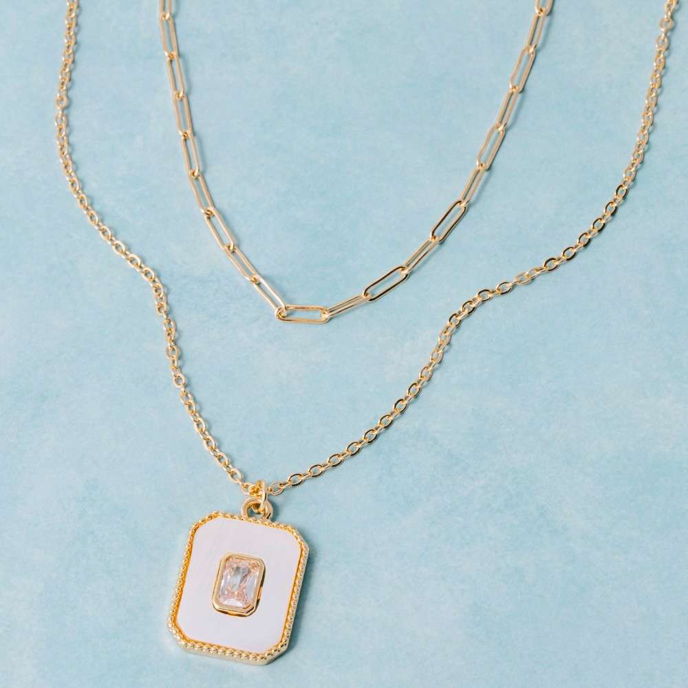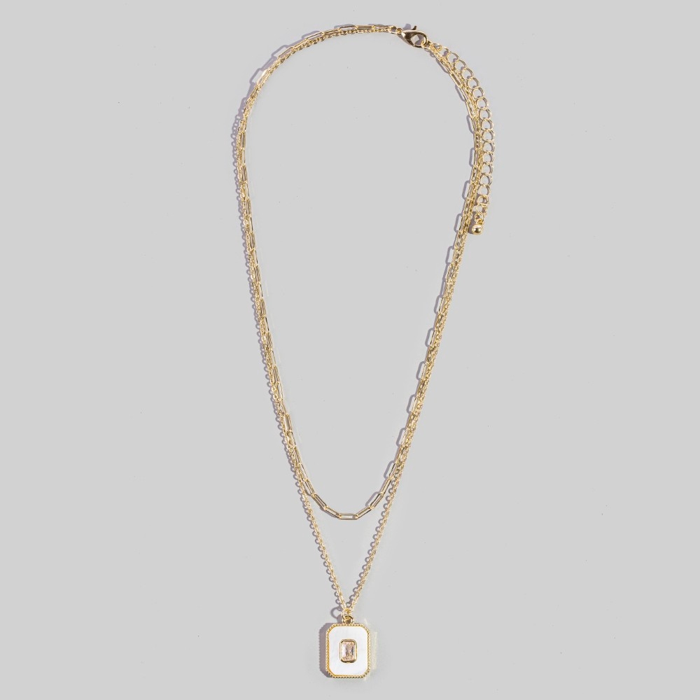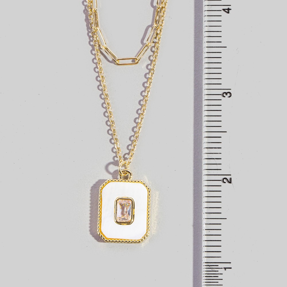 Perfectly versatile and endlessly stylish, this pendant necklace introduces an exceptional layered paperclip chain enamel cubic zirconia rectangle design. A perfect addition to your wardrobe that effortlessly enhances your style. Available in GD. This item is sold in packs of 1.